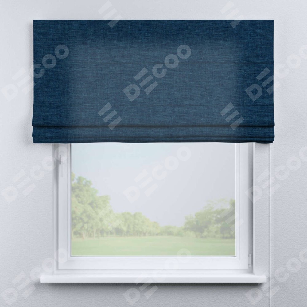Классическая римская штора производителя «Cortin», пошита из ткани лён синий, артикул: 104496. Имеет универсальный механизм и подходит для монтажа: на потолок, на стену и в нишу.