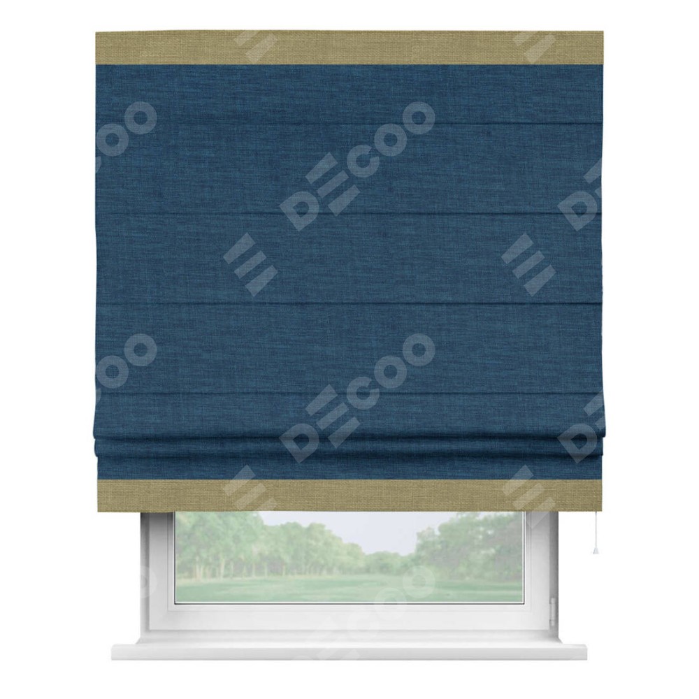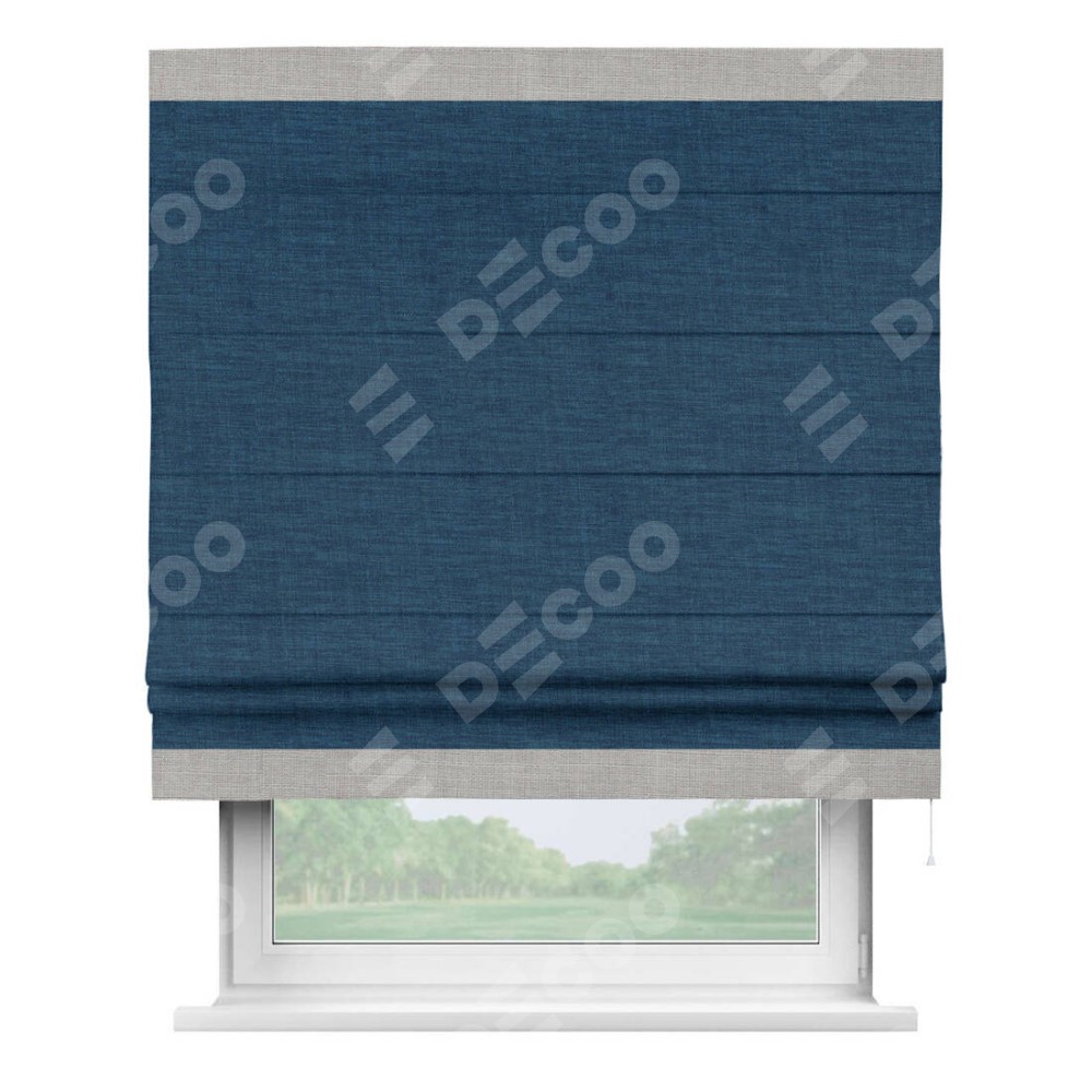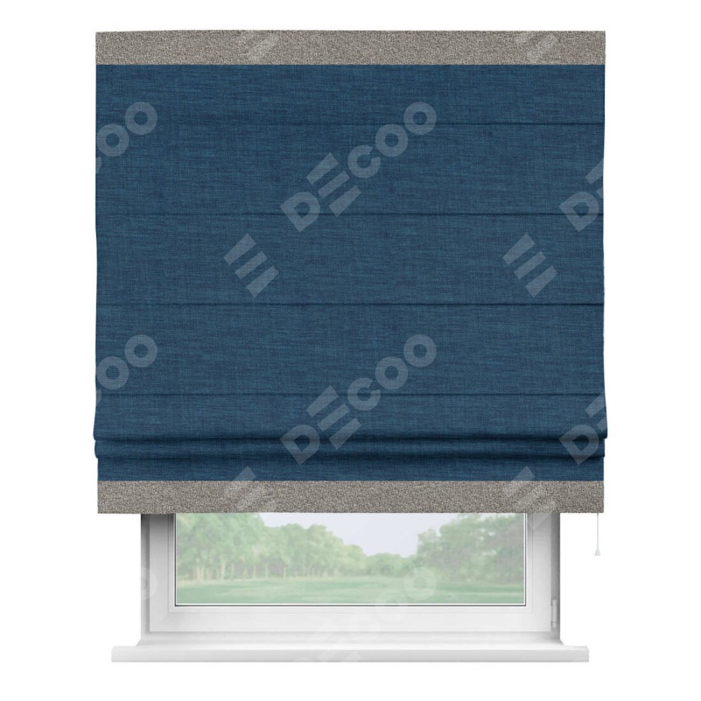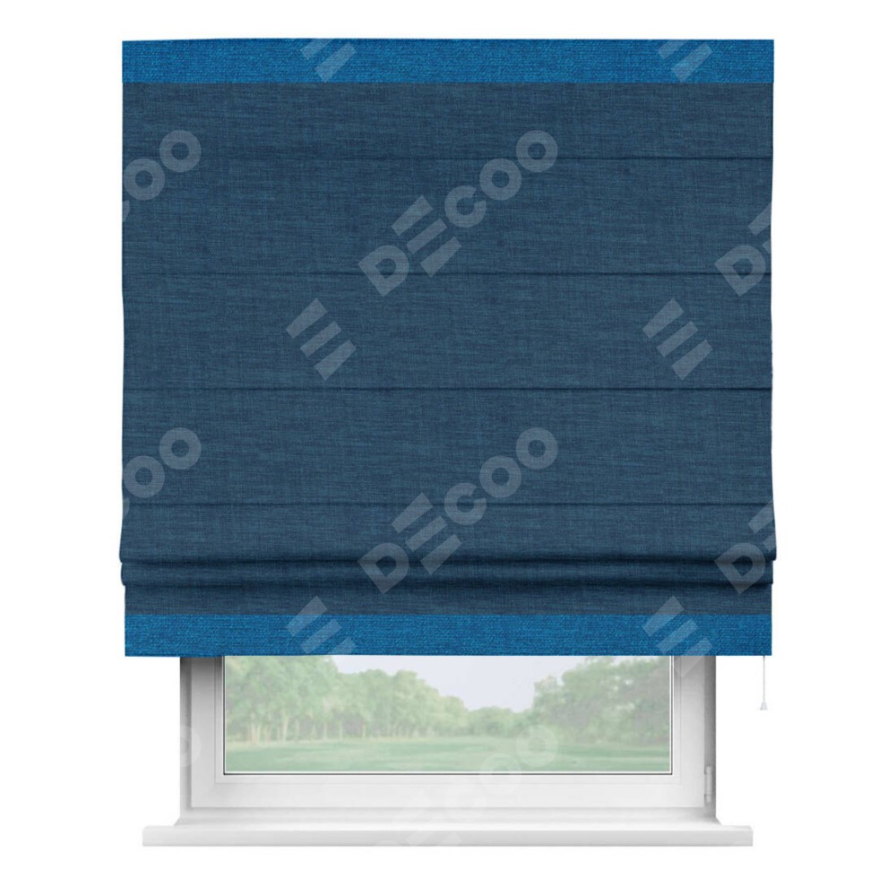 Римская штора «Кортин» для проёма, лён синий, с кантом Горизонт