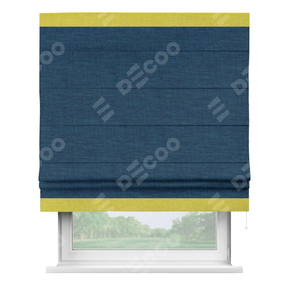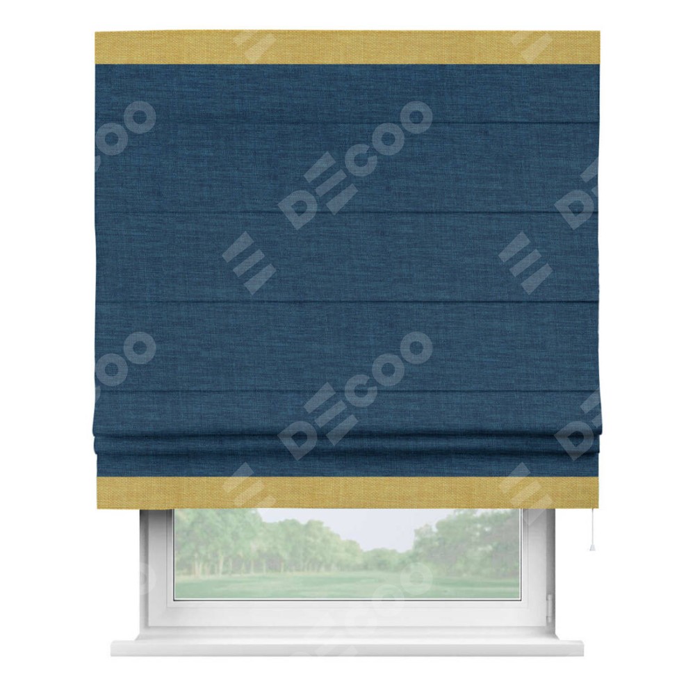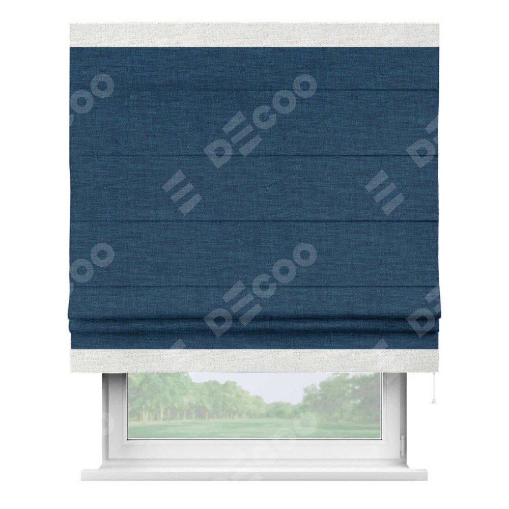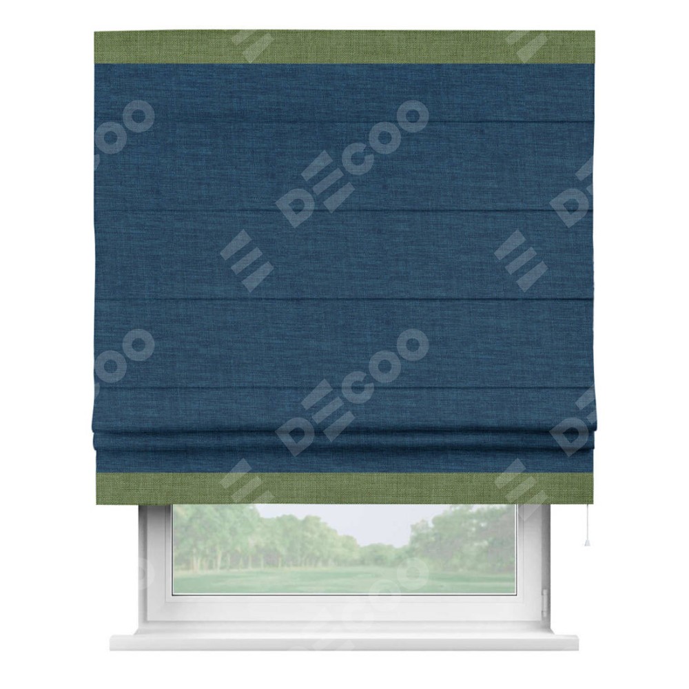 Римская штора «Кортин» для проёма, лён синий, с кантом Горизонт