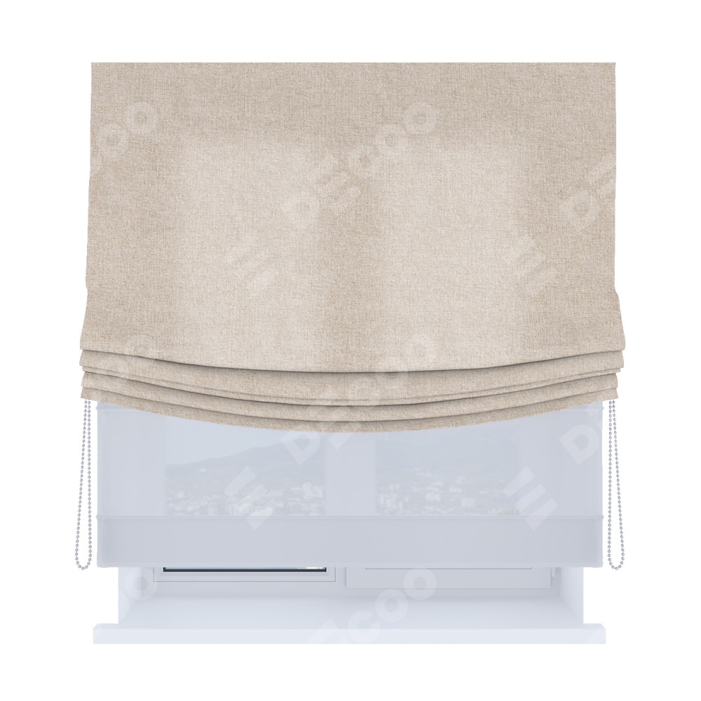 Римская штора «Кортин», лён кашемир натуральный беж, день-ночь с мягкими складками