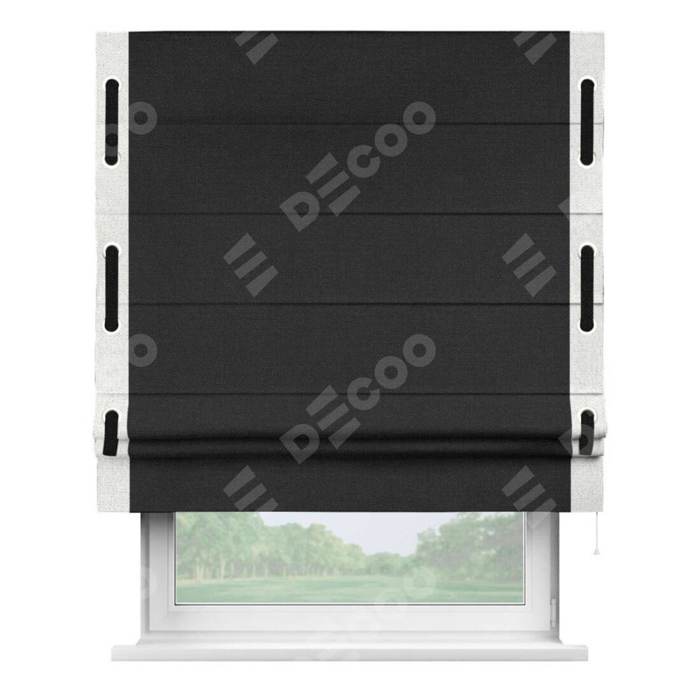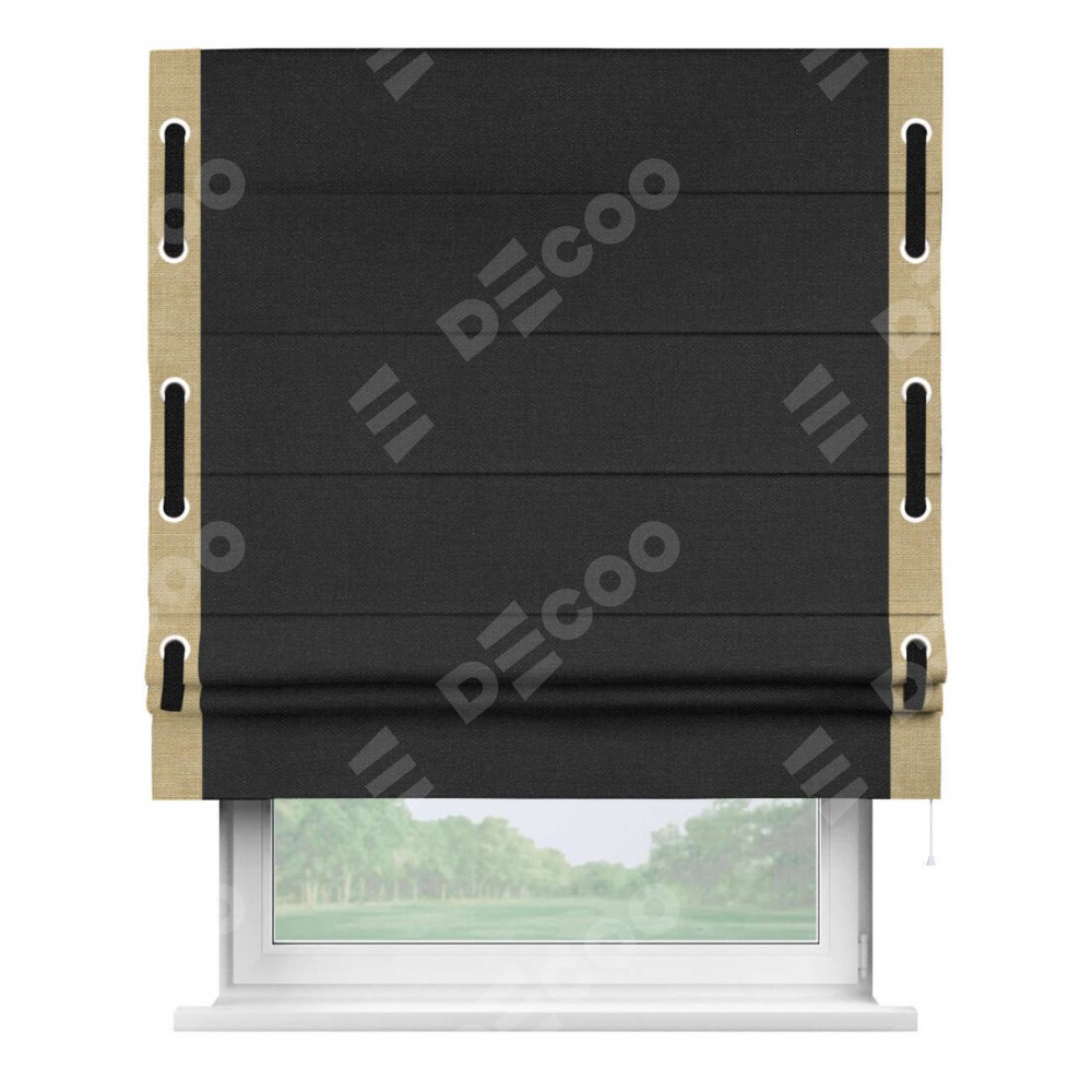 Римская штора «Кортин» для проёма, лён чёрный, с кантом Стрим Дуо (люверсы с пояском)