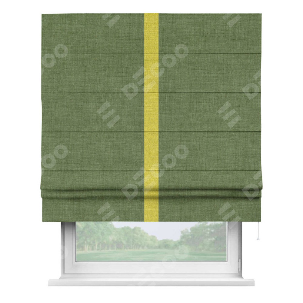 Римская штора «Кортин» для проёма, лён зелёный, с кантом Хайвэй