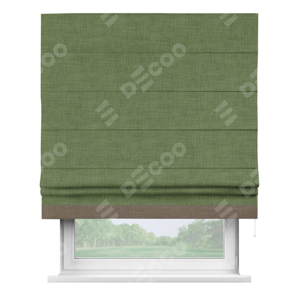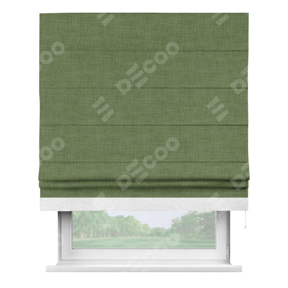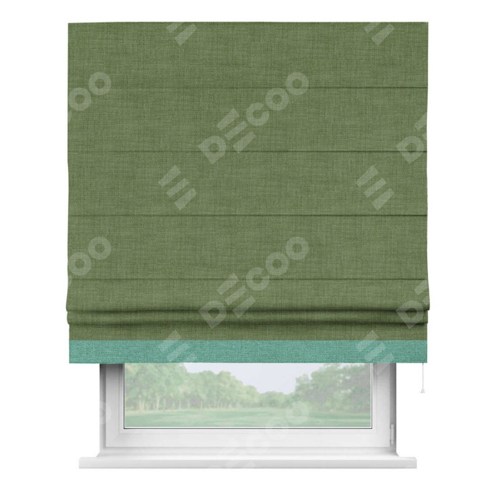Римская штора «Кортин» для проёма, лён зелёный, с кантом Джестер
