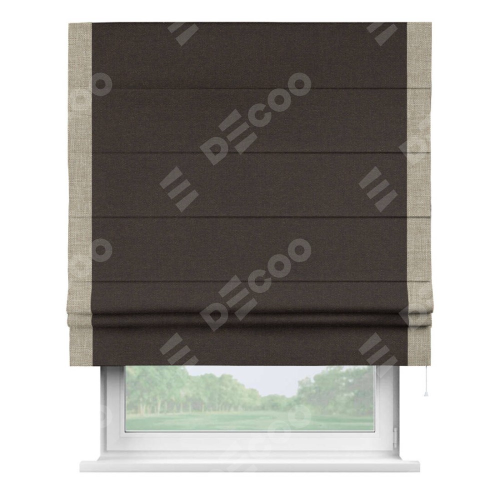Римская штора «Кортин» для проёма, лён тёмно-коричневый, с кантом Стрим Дуо