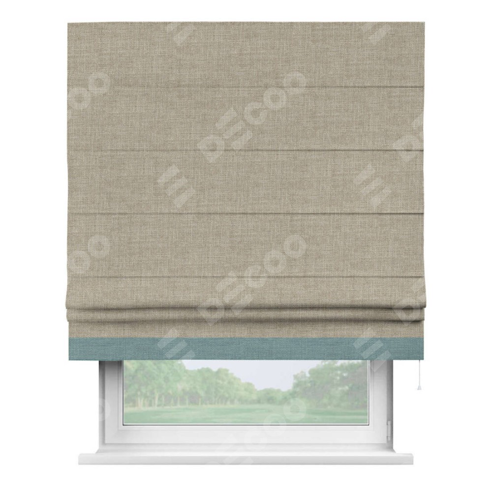 Римская штора «Кортин» для проёма, лён бежевый, с кантом Джестер