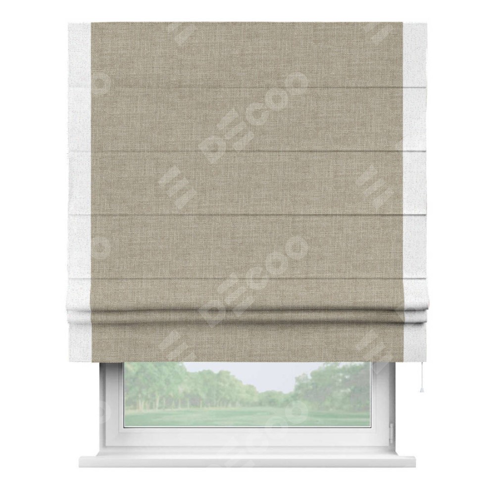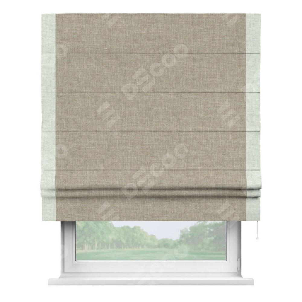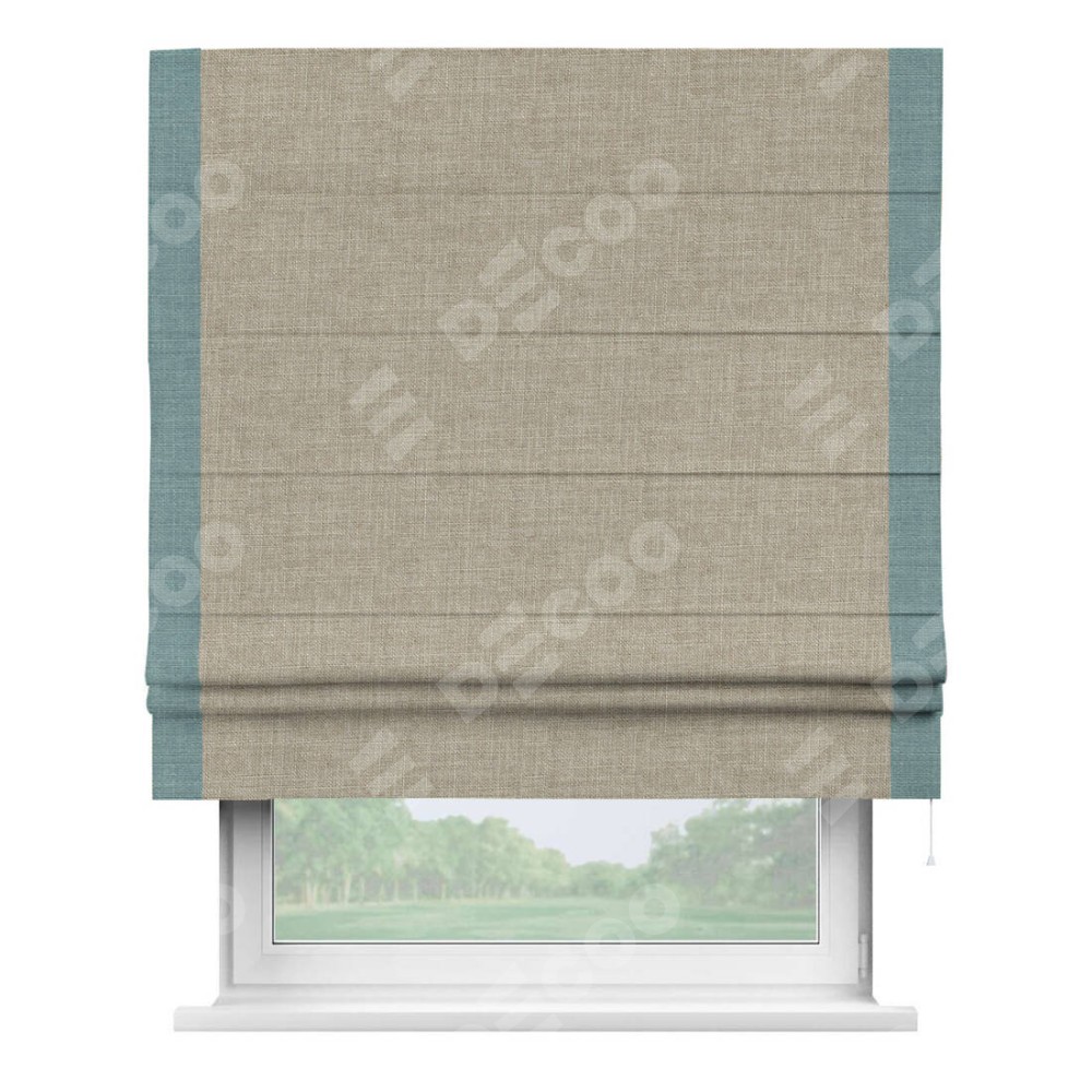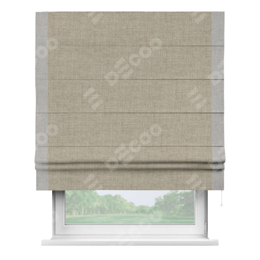 Римская штора «Кортин» для проёма, лён бежевый, с кантом Стрим Дуо