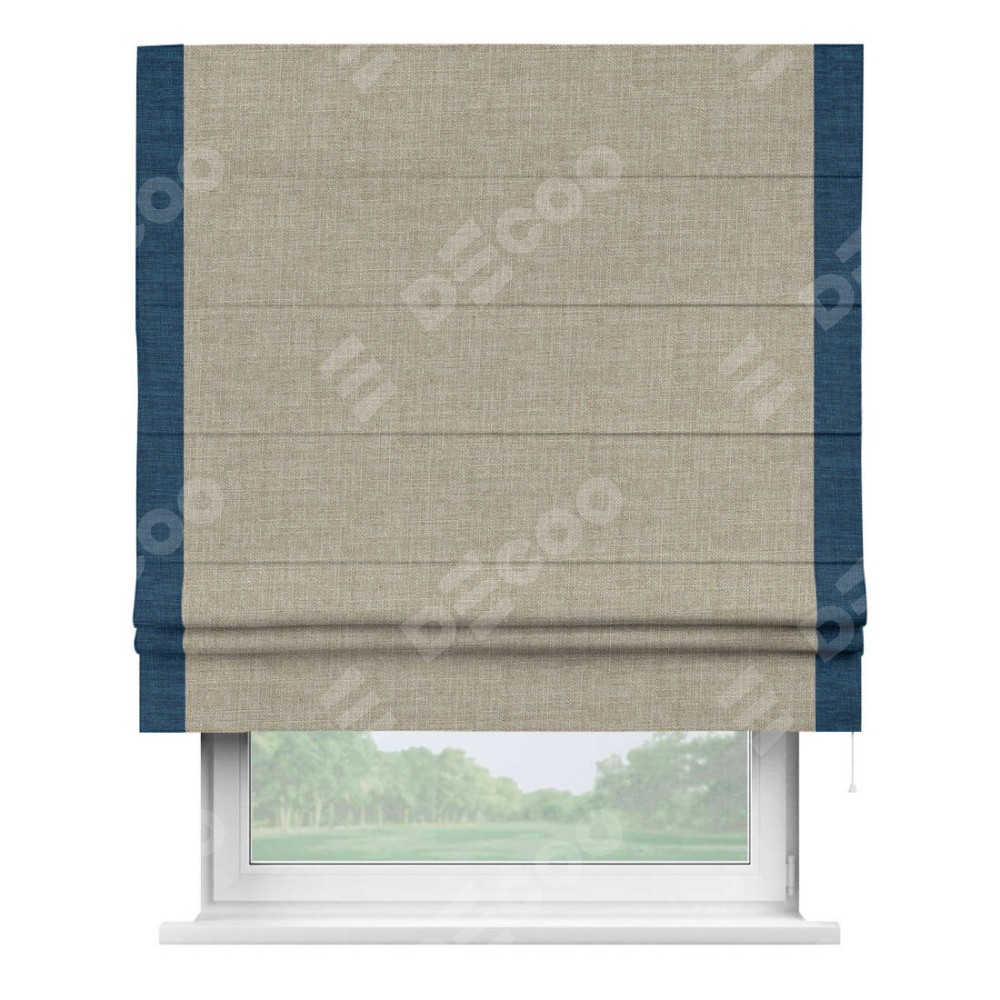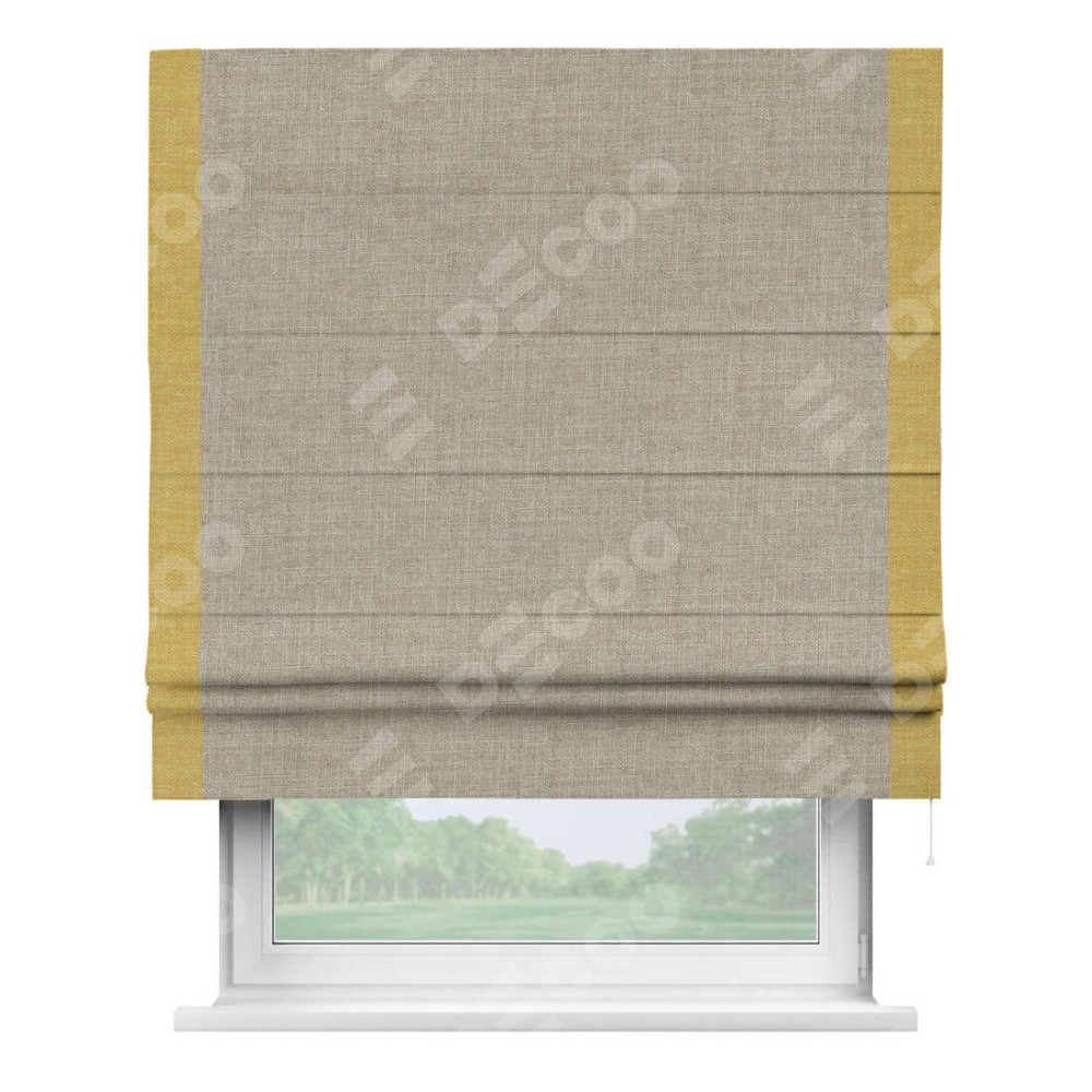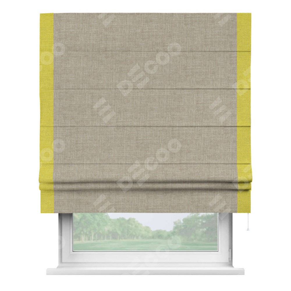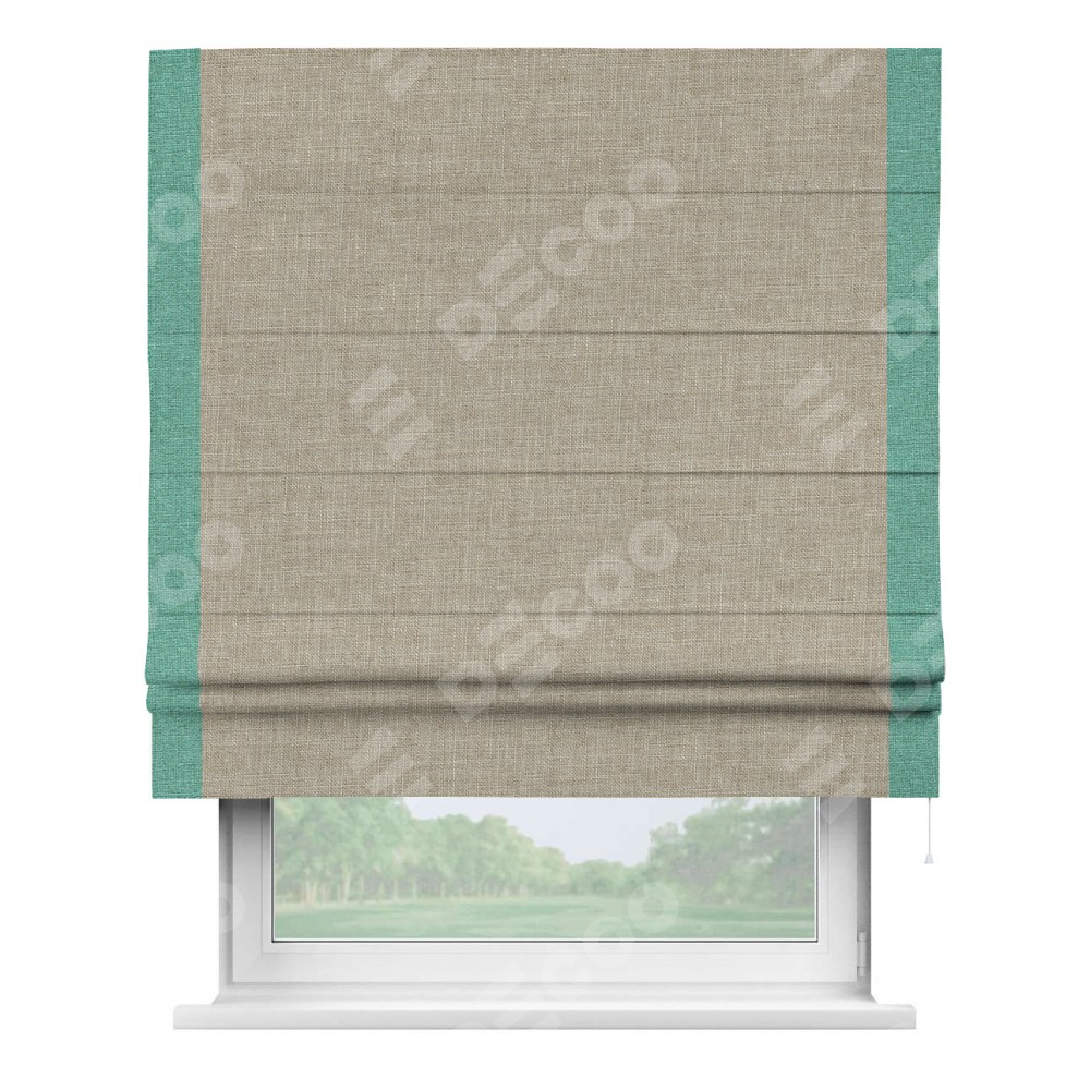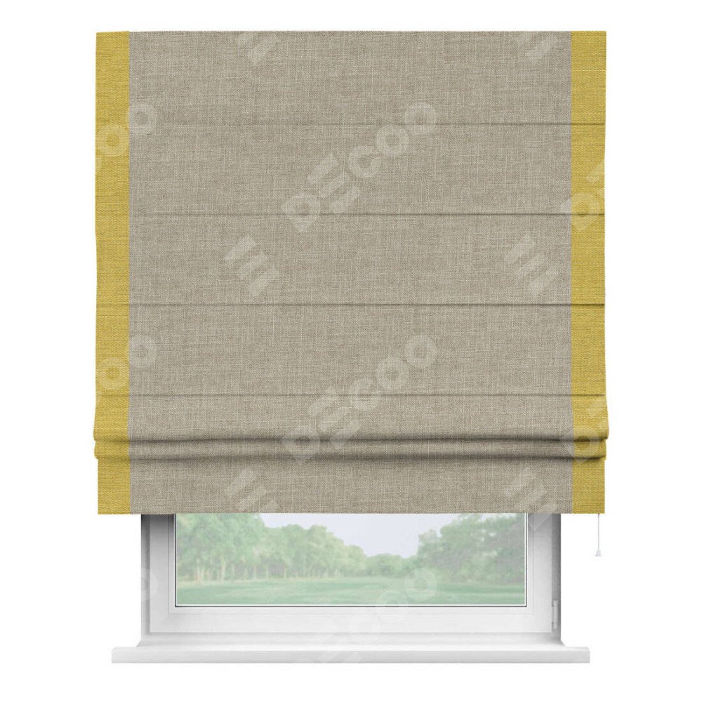 Римская штора «Кортин» для проёма, лён бежевый, с кантом Стрим Дуо