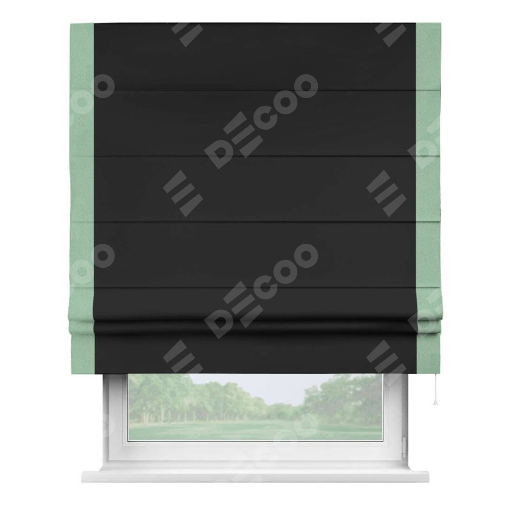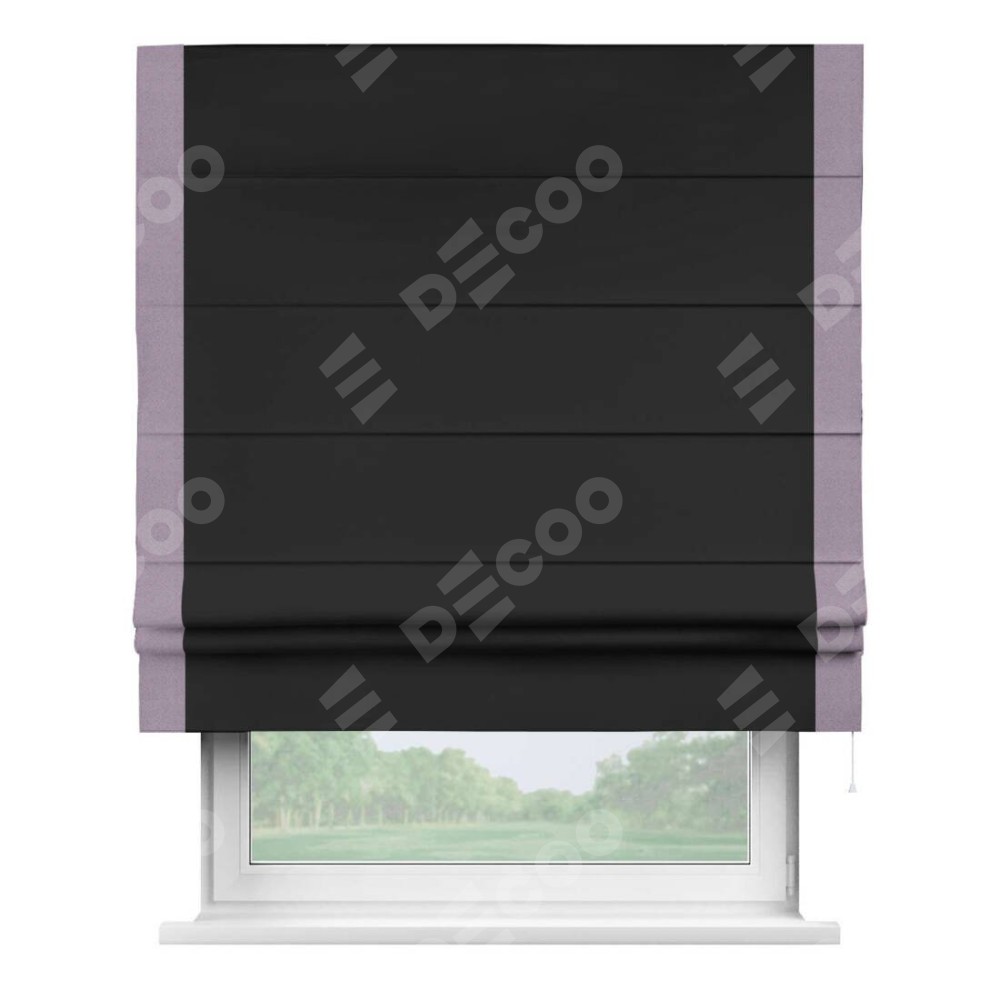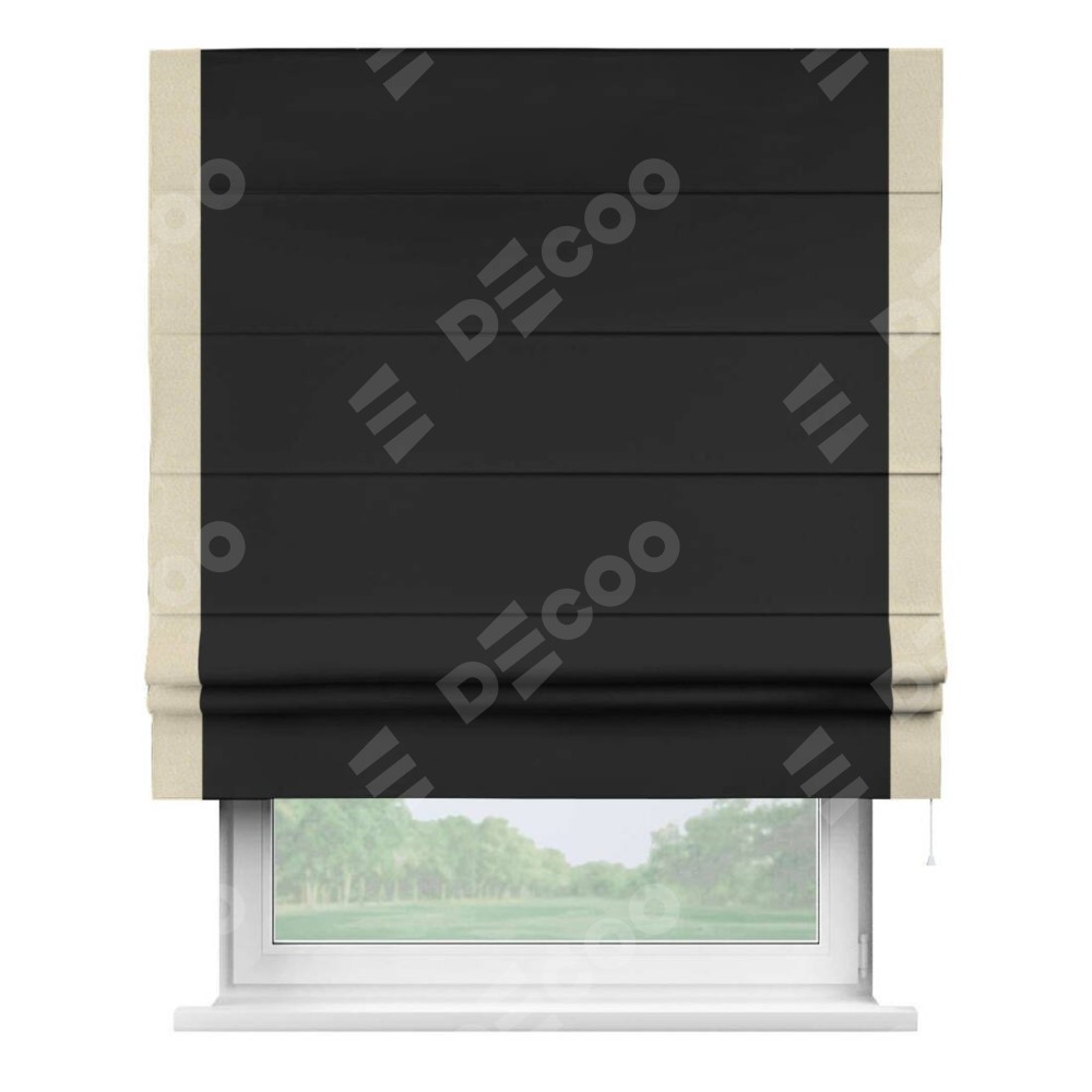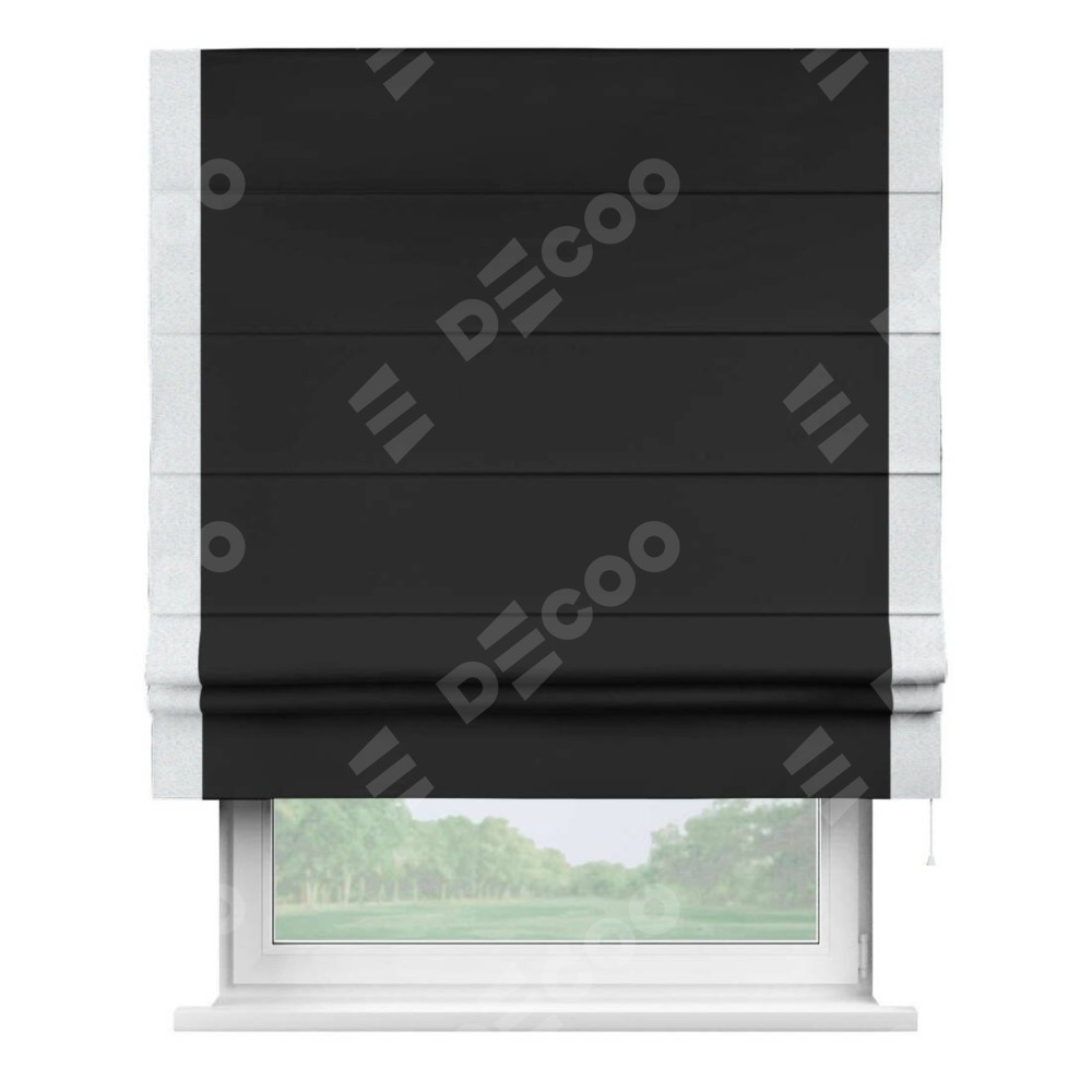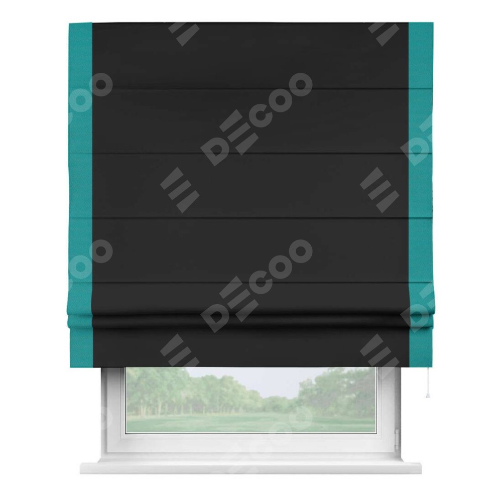 Римская штора «Cortin» для проёма, блэкаут однотонный черный с кантом Стрим Дуо
