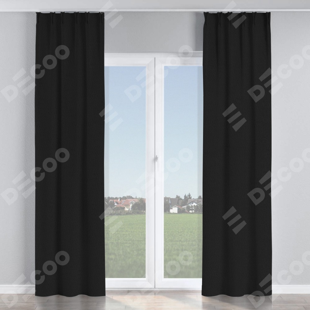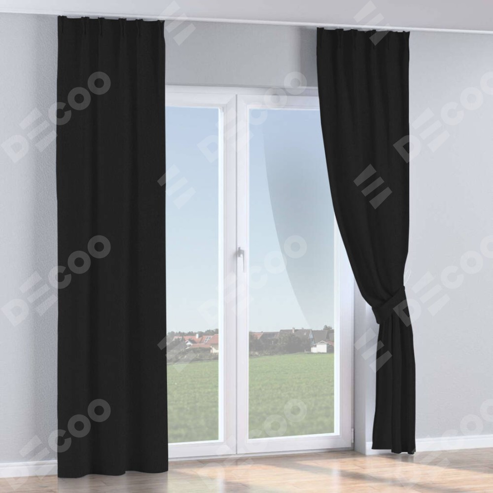 Комплект прямых штор, от производителя «Cortin», пошиты из ткани лён рустик черный, артикул ткани 145313. С изнаночной стороны в верхней части штор пристрачивается шторная лента с декоративными складками «Кустик». Для создания элегантных складок рекомендуемый коэффициент 1:2 (на 100 см. ширины проёма 200 см. ширины ткани). Важно! Ширина штор указана без учёта коэффициента сборки!