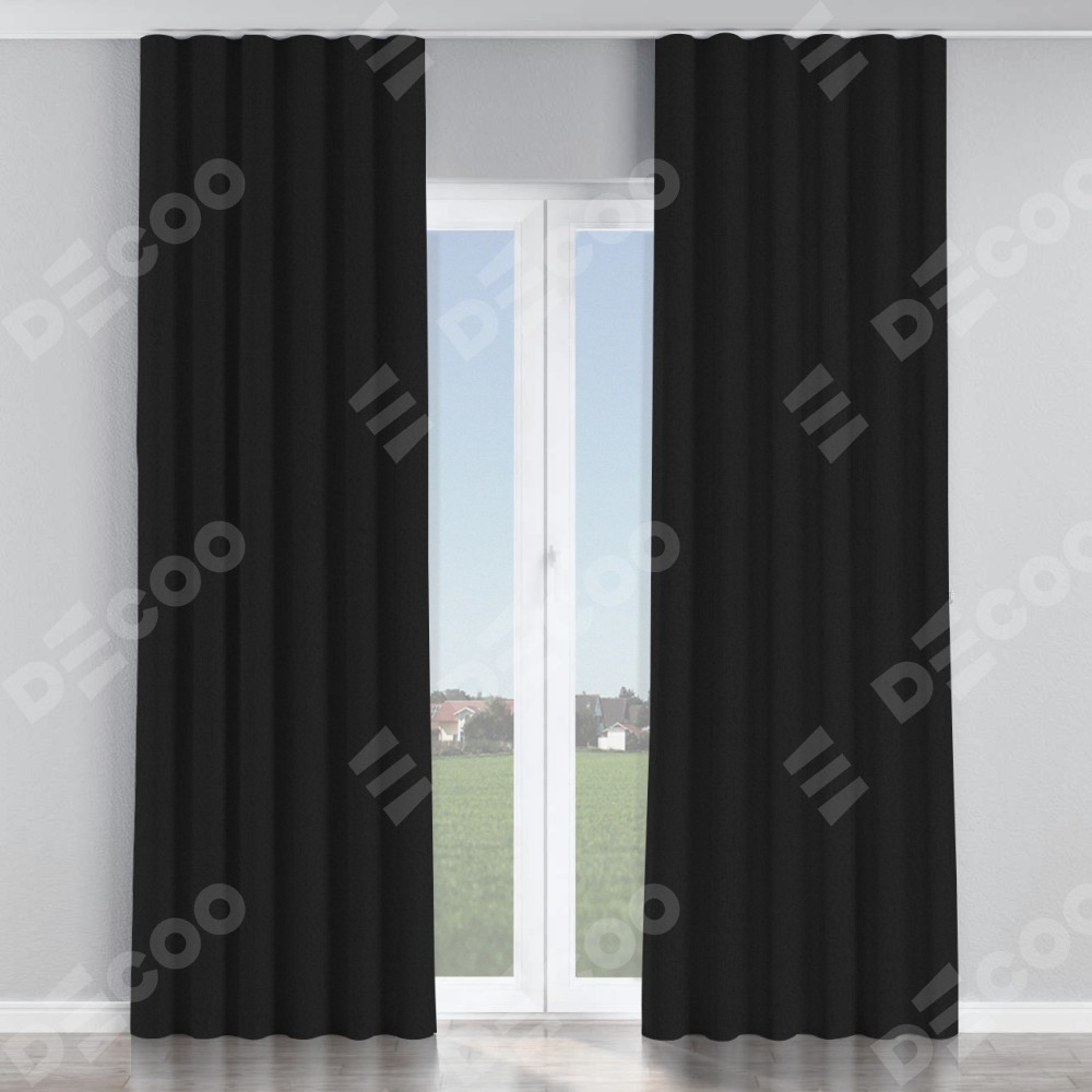 Комплект прямых штор, от производителя «Cortin», пошиты из ткани лён рустик черный, артикул ткани 145313. С изнаночной стороны в верхней части штор пристрачивается шторная лента с декоративными складками «Волна». Для создания элегантных складок рекомендуемый коэффициент 1:2 (на 100 см. ширины проёма 200 см. ширины ткани). Важно! Ширина штор указана без учёта коэффициента сборки!