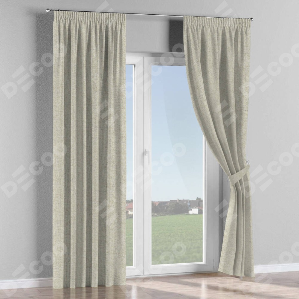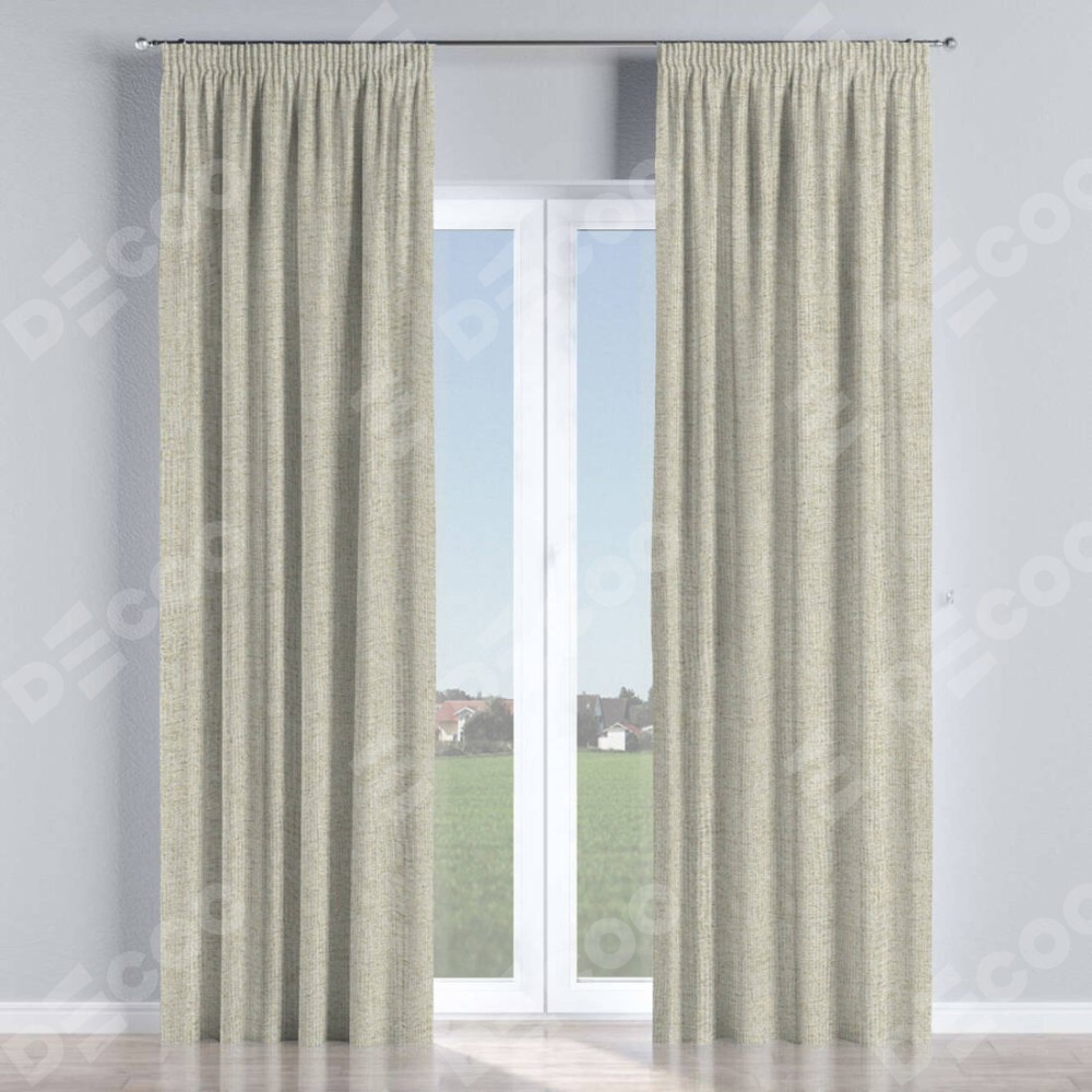 С изнаночной стороны в верхней части штор пристрачивается шторная лента с декоративными складками «Карандаш». Для создания элегантных складок рекомендуемый коэффициент 1:2 (на 100 см. ширины проёма 200 см. ширины ткани). Важно! Ширина штор указана без учёта коэффициента сборки!