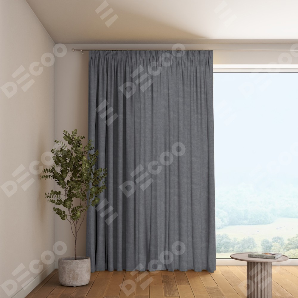 Готовые шторы от производителя «Cortin» представлены комплектом из двух одинаковых по размеру полотен, пошитых из ткани канвас стальной, артикул ткани v-1082. Такие шторы по сравнению с индивидуальным пошивом имеют ряд преимуществ: удобный размерный ряд под стандартные проёмы, стоимость и сроки (т.к. изделия всегда в наличии).