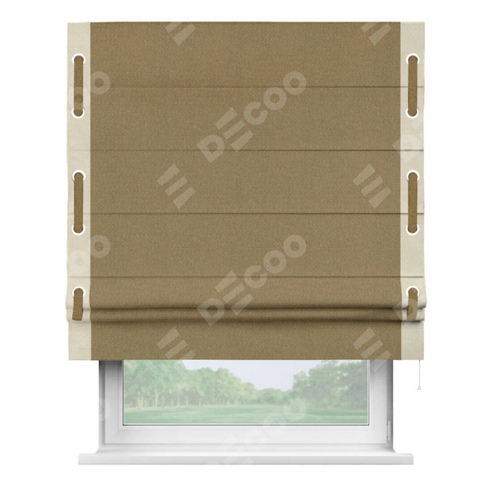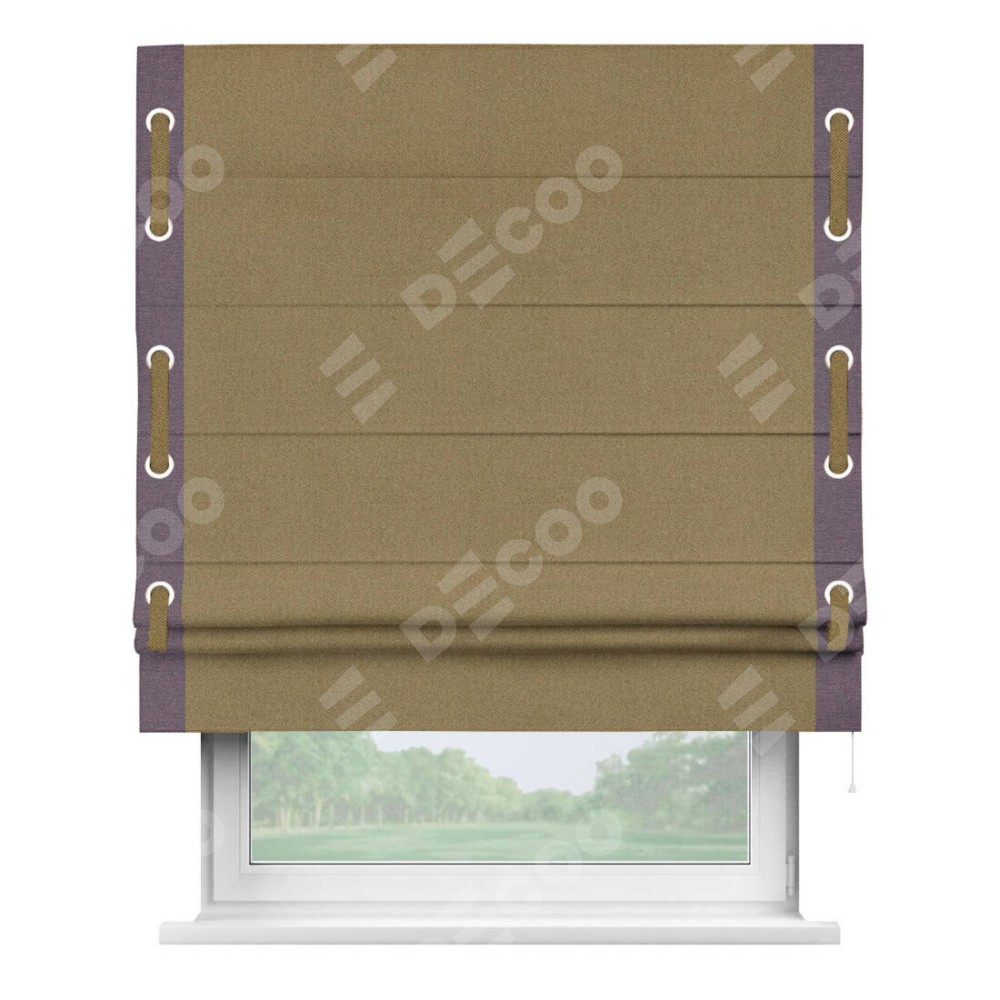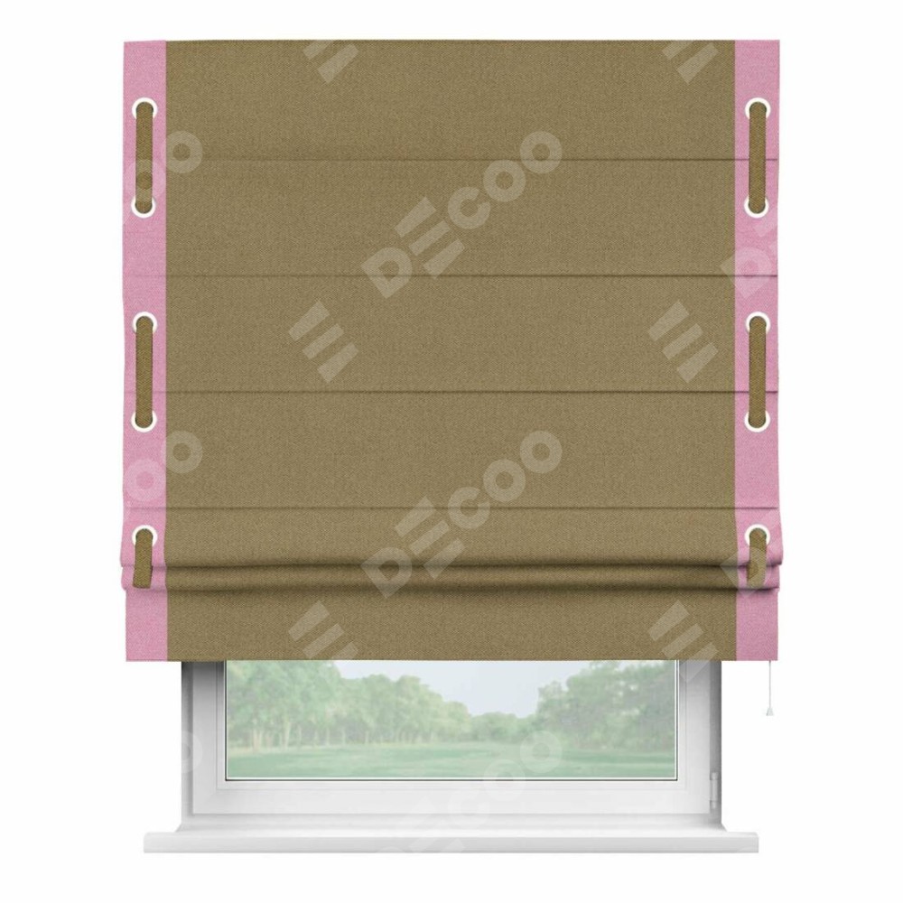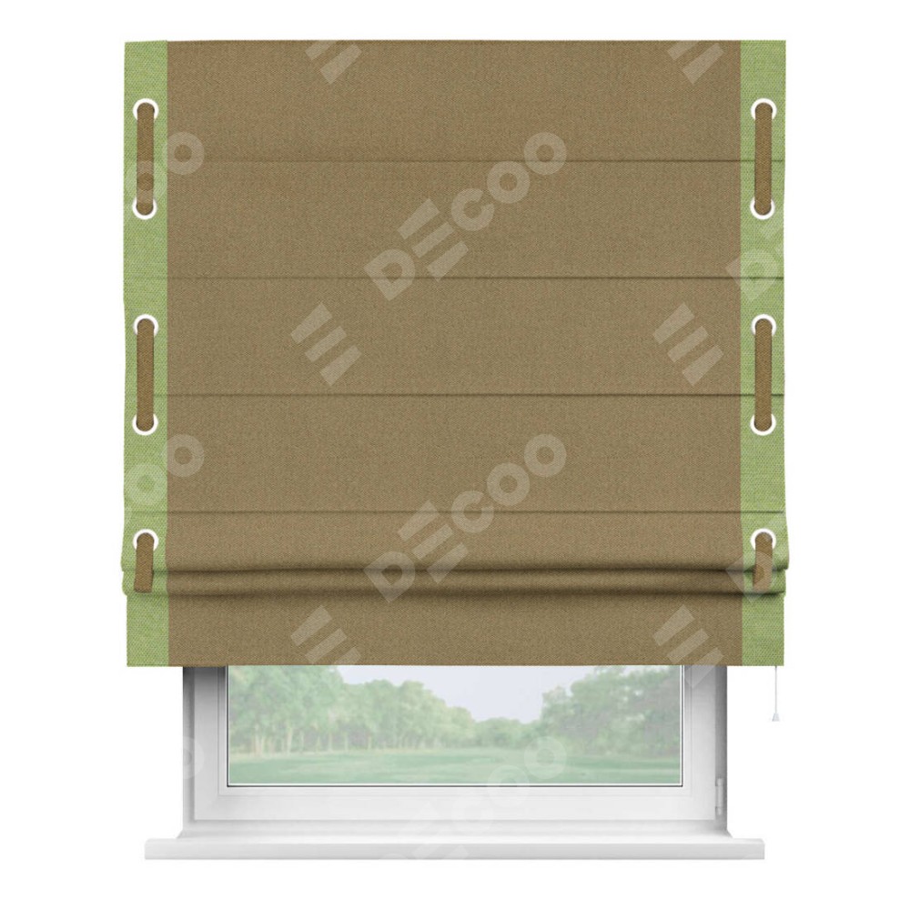 Римская штора «Кортин» с кантом Стрим Дуо (люверсы с пояском), для проема, ткань лён димаут, оливковый