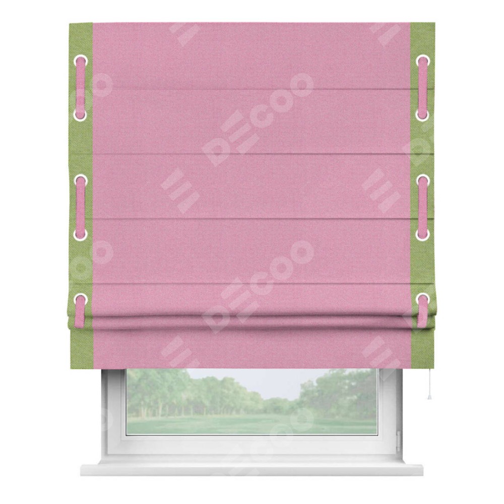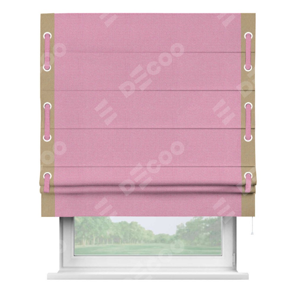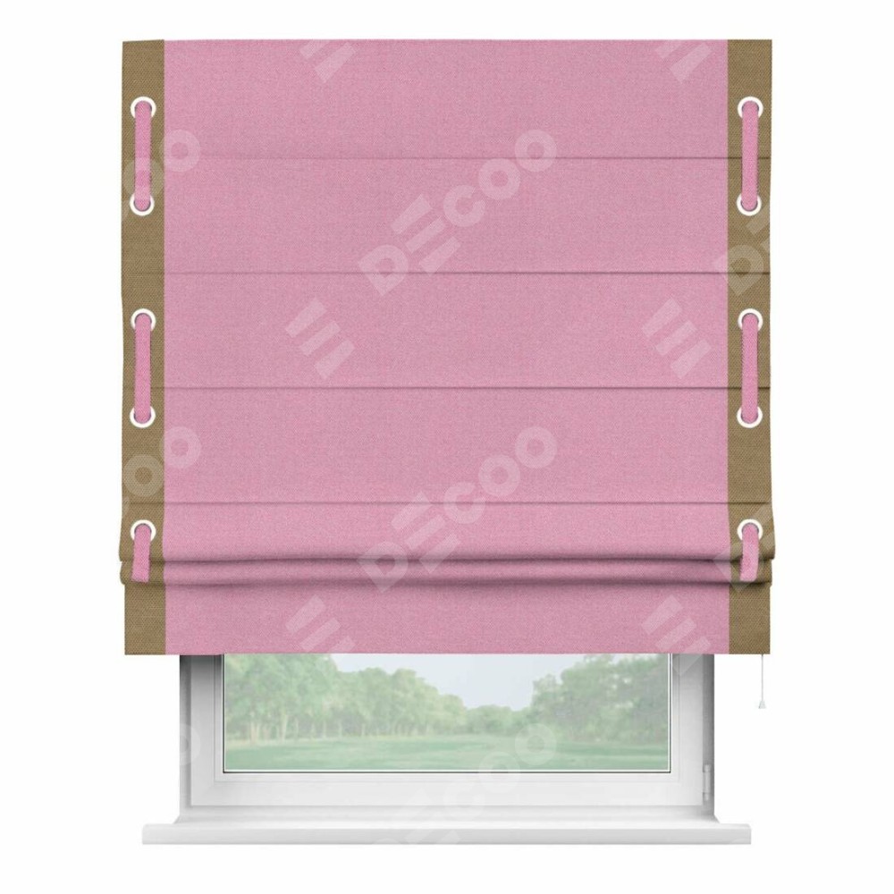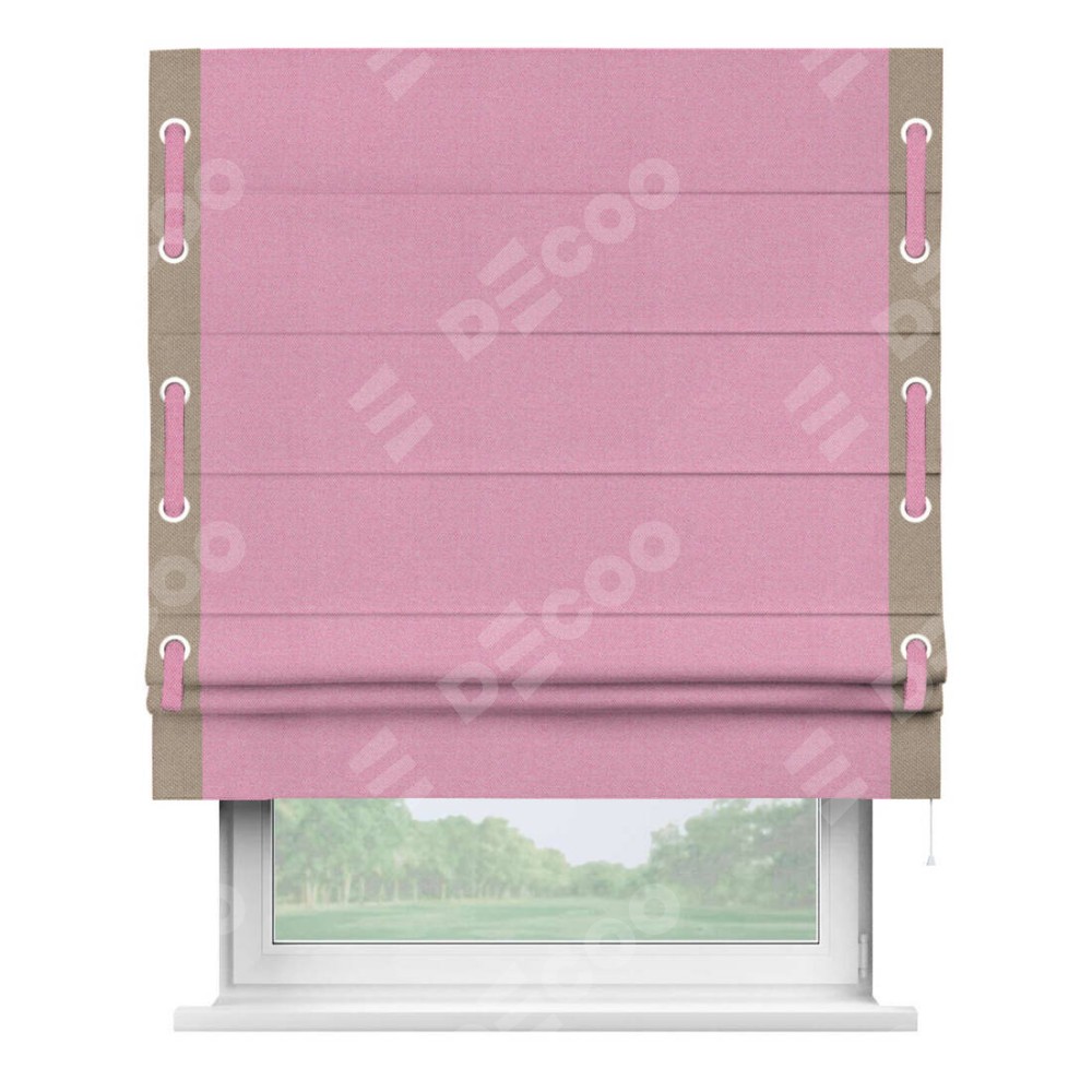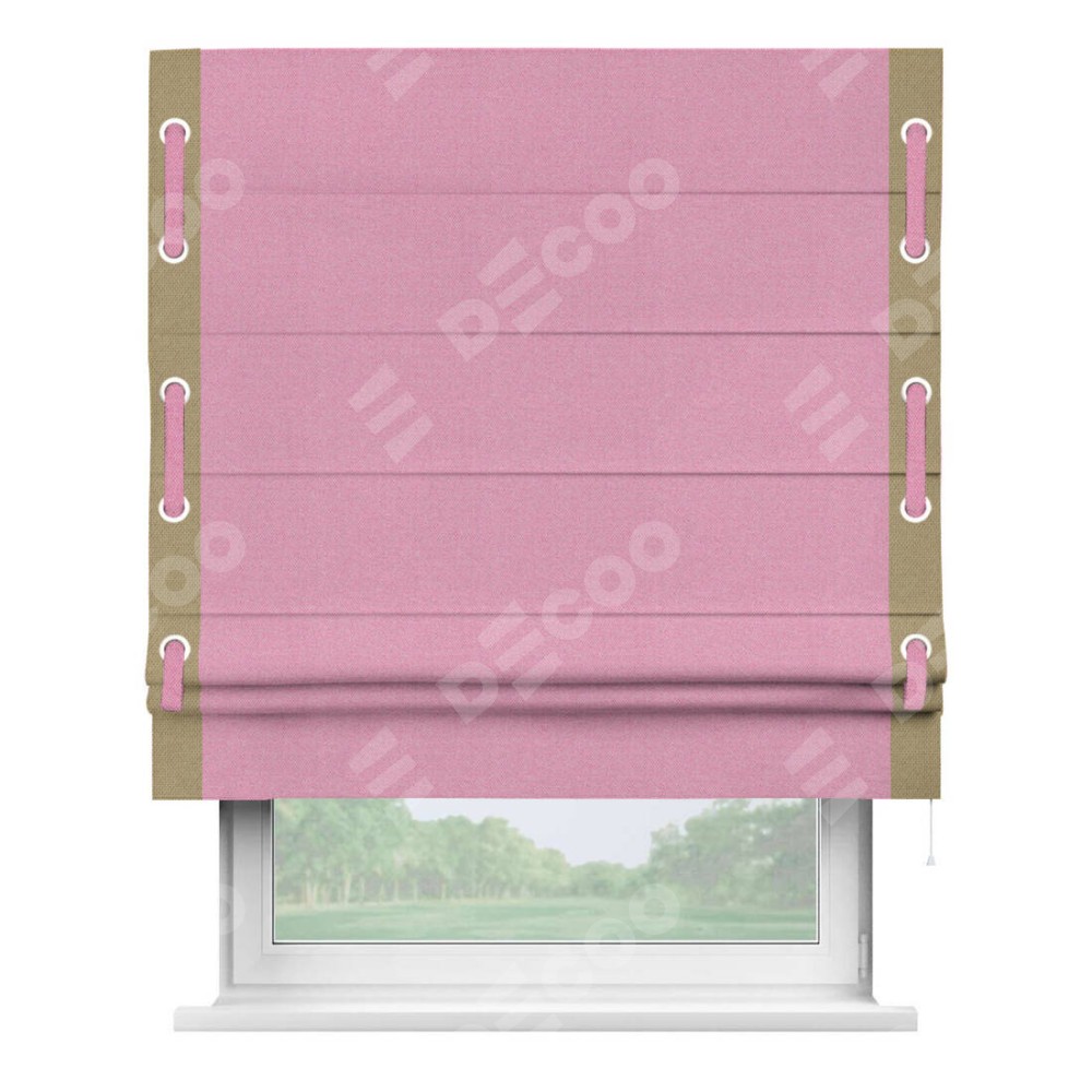 Римская штора «Кортин» с кантом Стрим Дуо (люверсы с пояском), для проема, ткань лён димаут, розовый
