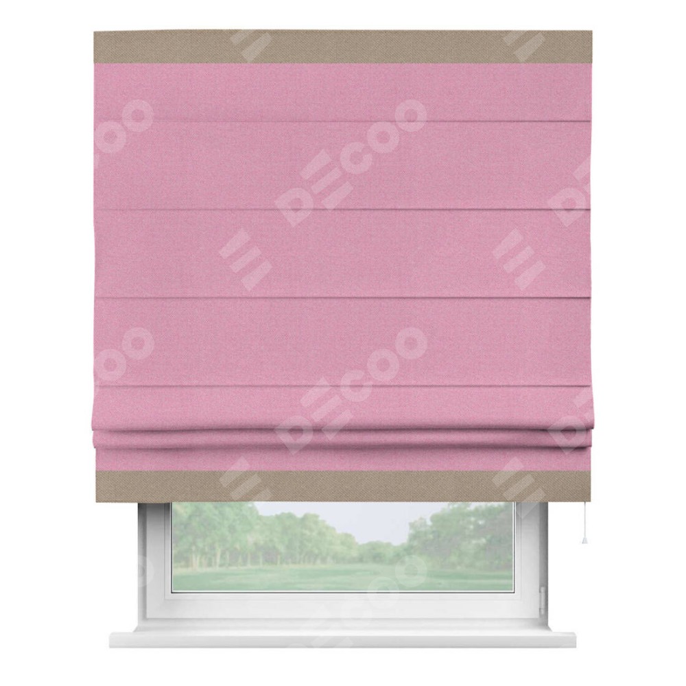 Римская штора «Кортин» с кантом Горизонт, для проема, ткань лён димаут, розовый