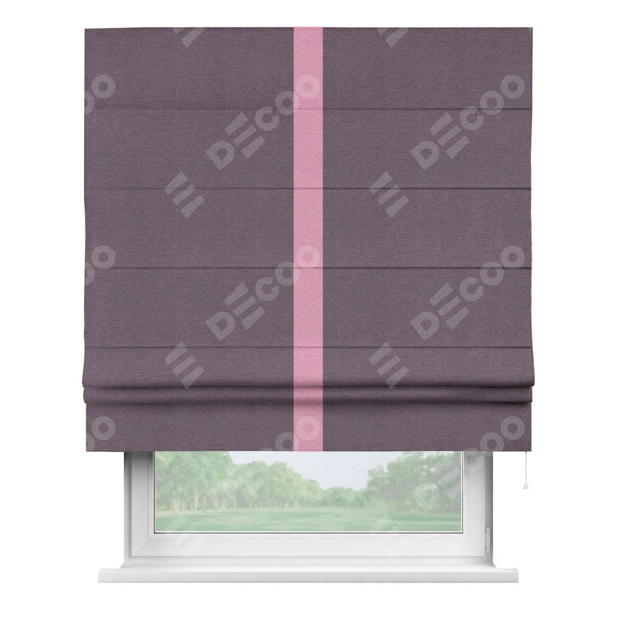 Римская штора производителя «Cortin», используется для проёма, пошита из ткани лён димаут светло-фиолетовый, артикул 83 034. Отделка шторы кантом «Хайвэй», ткань для канта используется из льна димаут разной расцветки на выбор. Имеет универсальный механизм и подходит для монтажа: на потолок, на стену и в нишу.