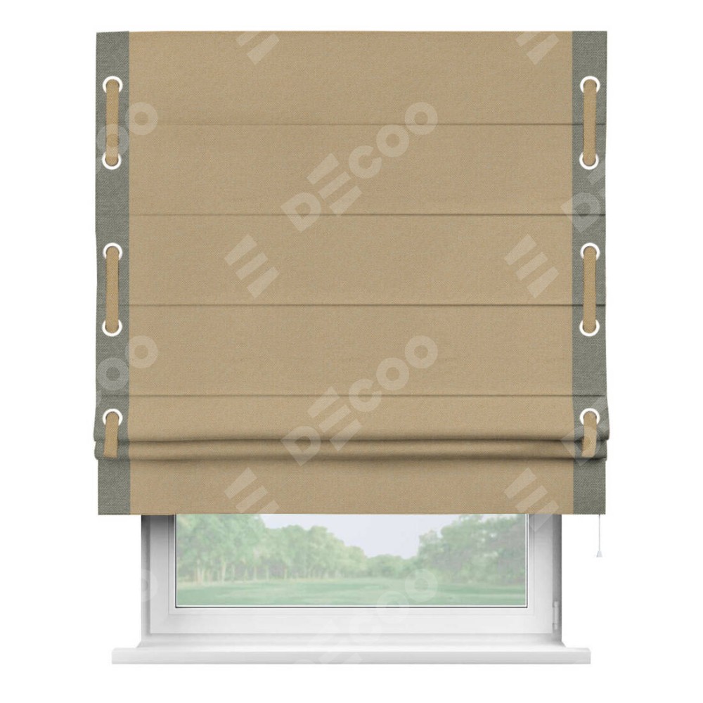 Римская штора «Кортин» с кантом Стрим Дуо (люверсы с пояском), для проема, ткань лён димаут, тёмно-бежевый