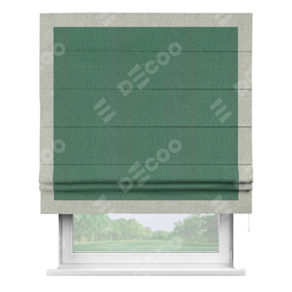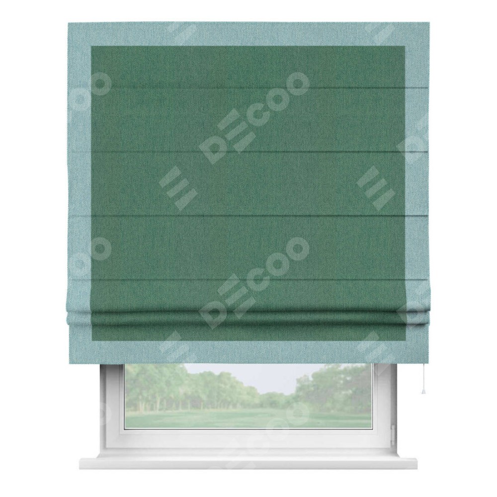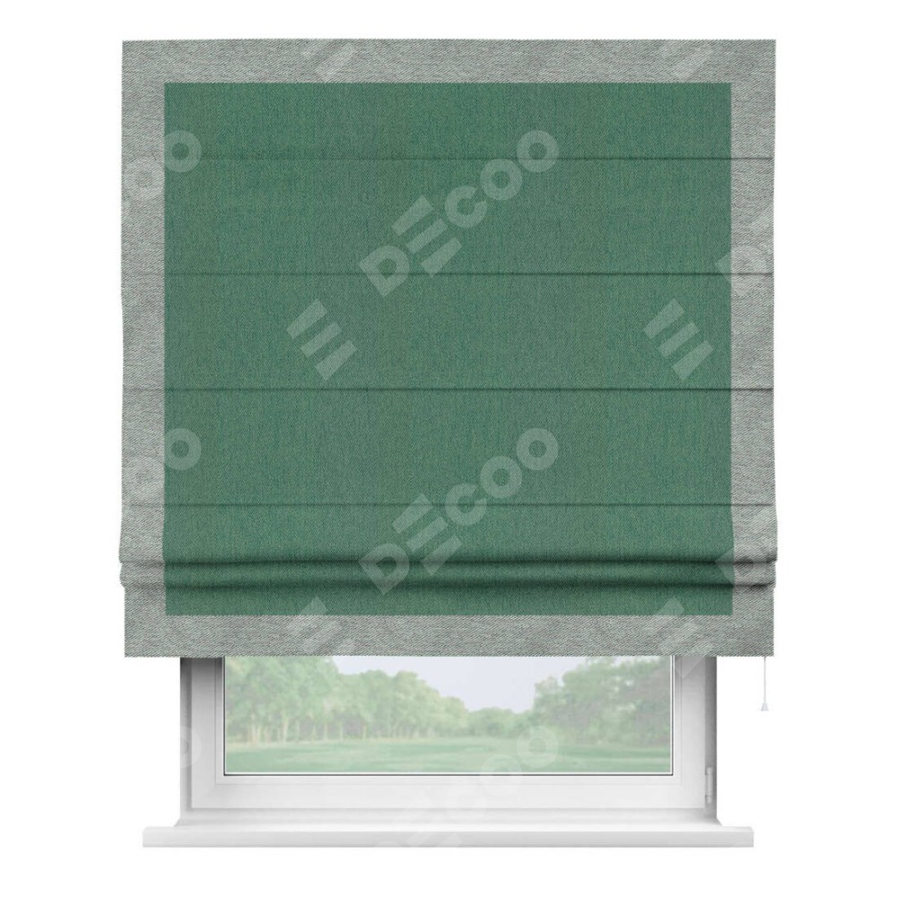 Римская штора «Кортин» с кантом Чесс, для проема, ткань твид блэкаут, зелёный