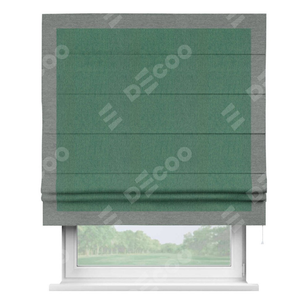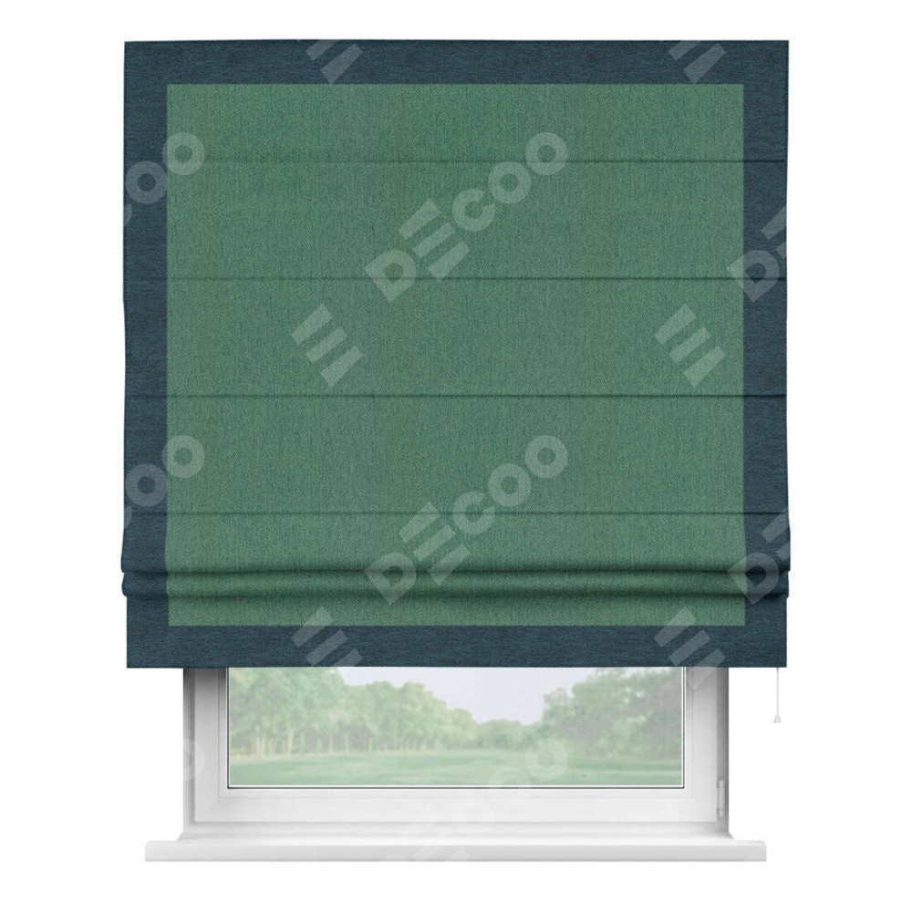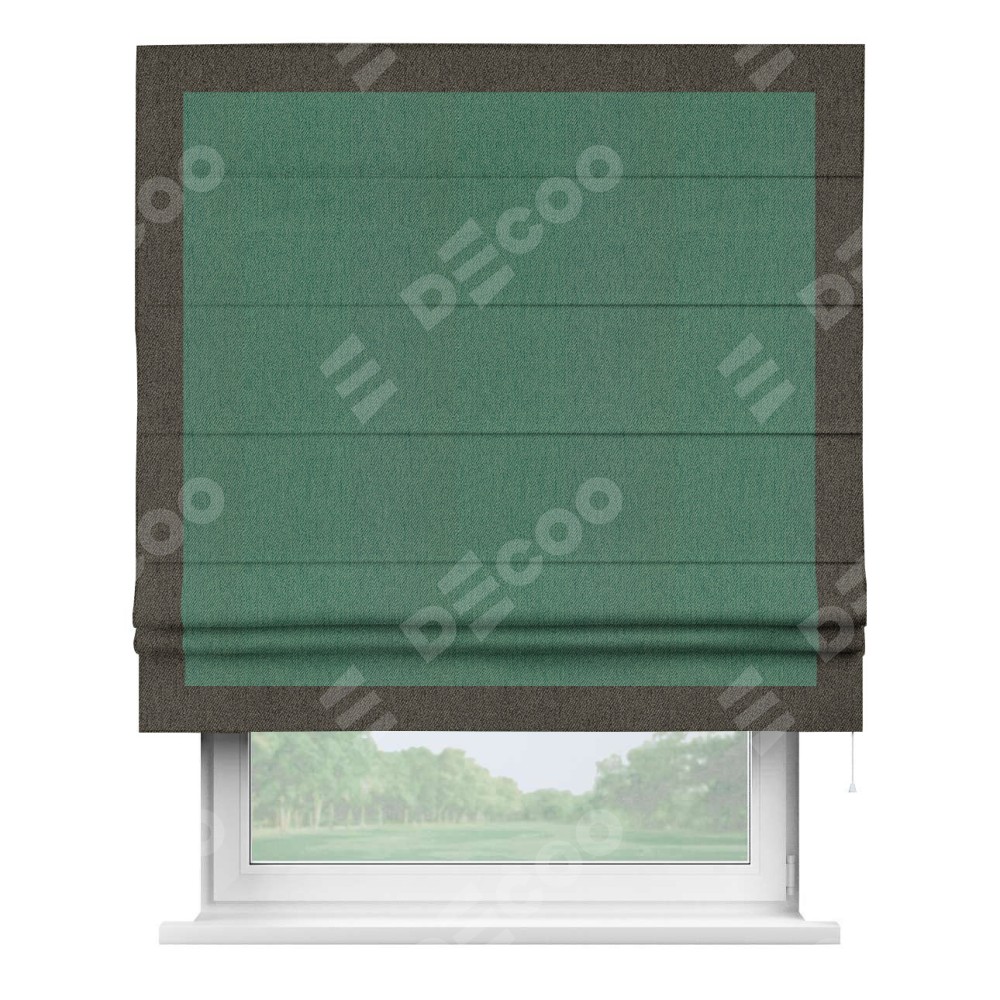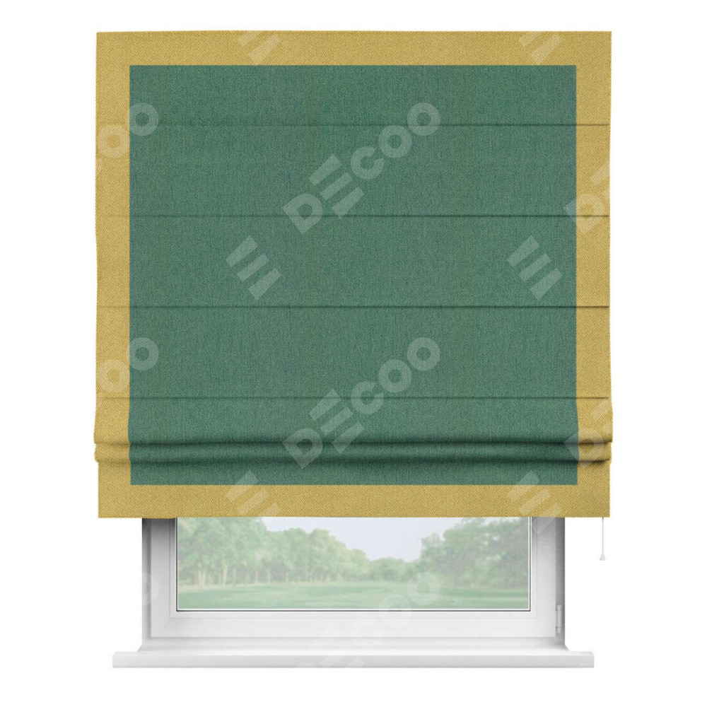 Римская штора «Кортин» с кантом Чесс, для проема, ткань твид блэкаут, зелёный