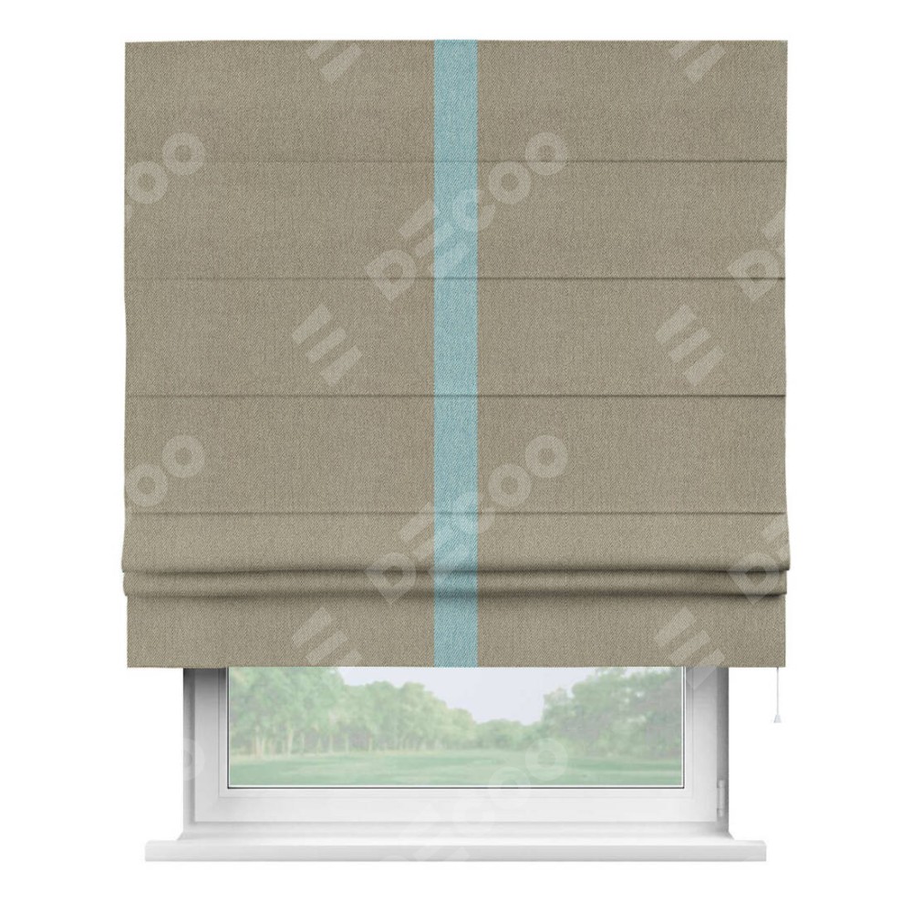 Римская штора производителя «Cortin», используется для проёма, пошита из ткани твид блэкаут кофе, артикул 21575. Отделка шторы кантом «Хайвэй», ткань для канта используется из твида разной расцветки на выбор. Имеет универсальный механизм и подходит для монтажа: на потолок, на стену и в нишу.