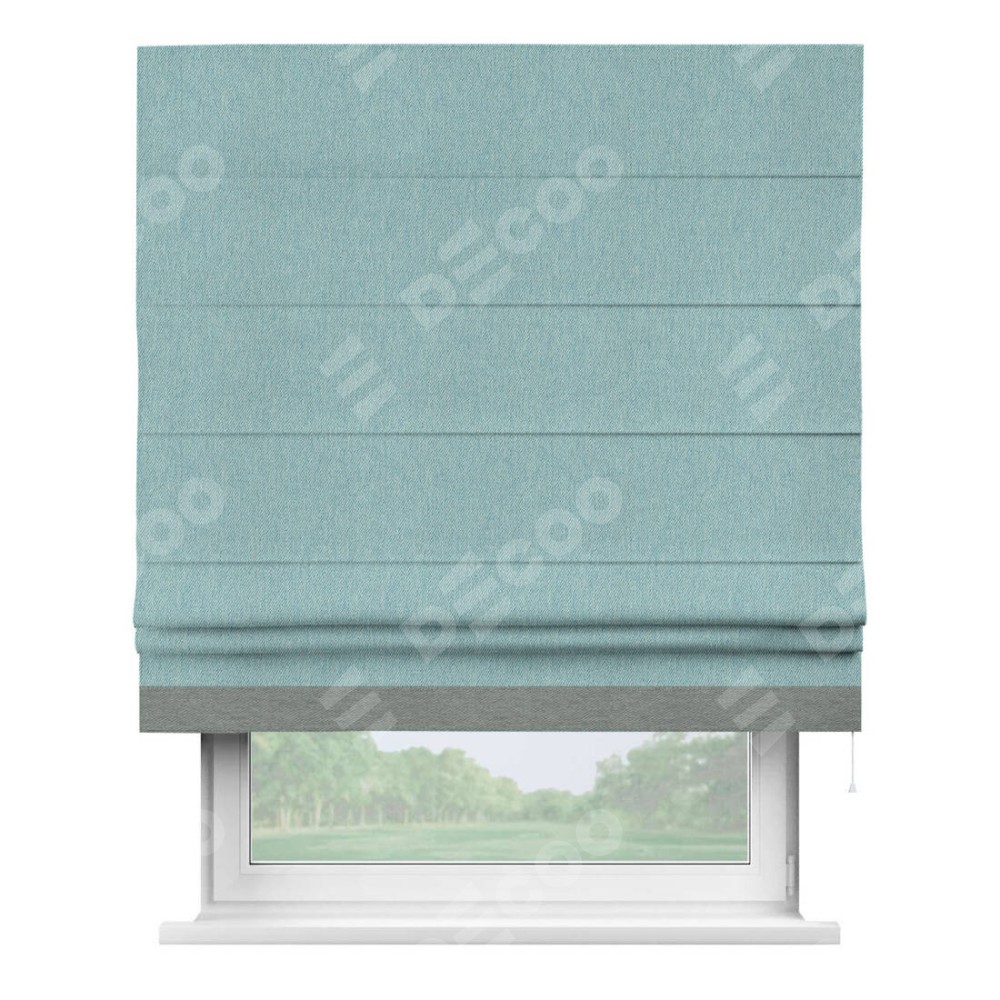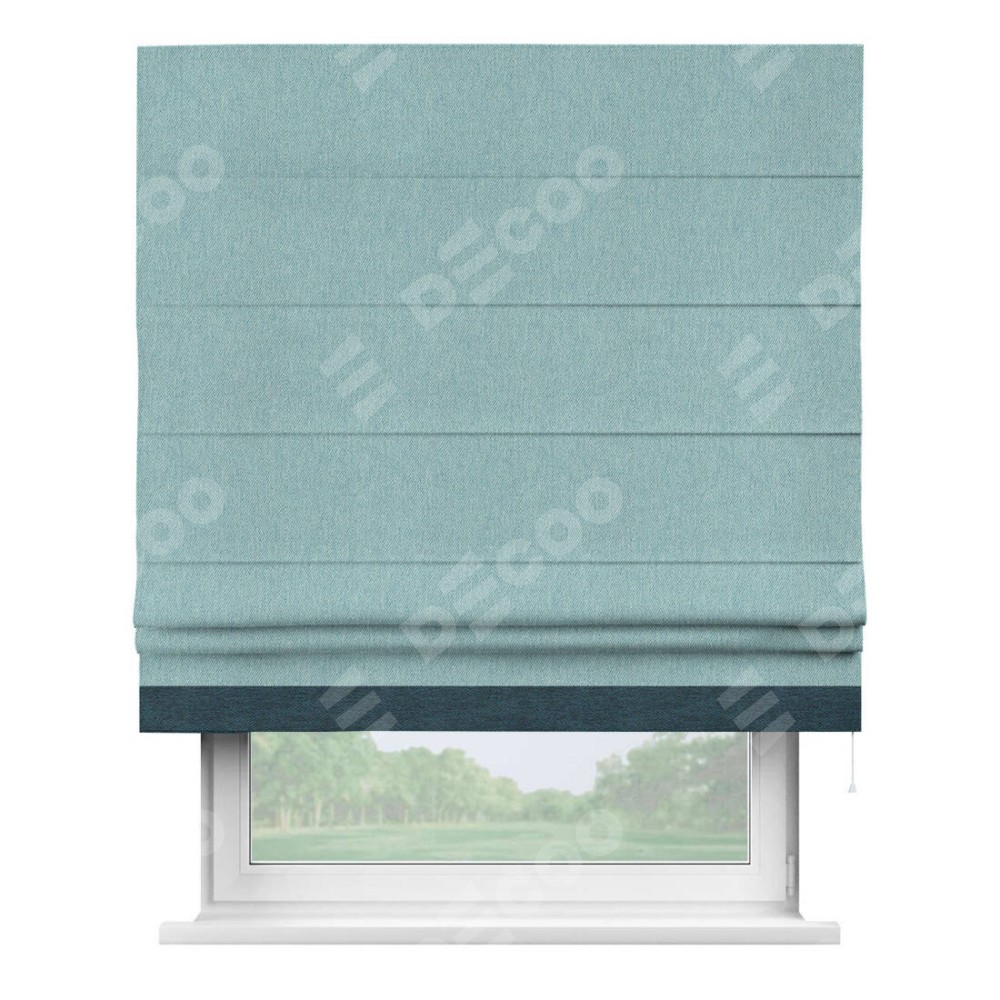 Римская штора «Кортин» с кантом Джестер, для проема, ткань твид блэкаут, небесно-голубой