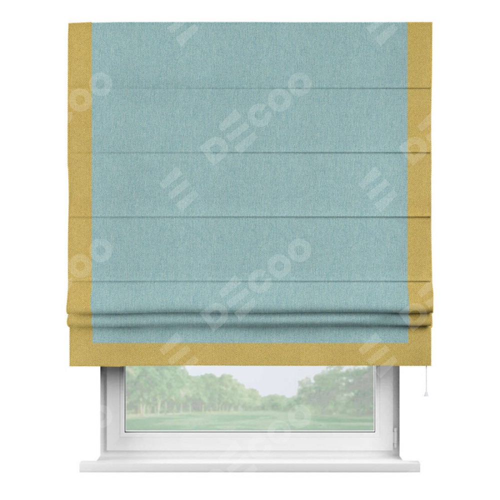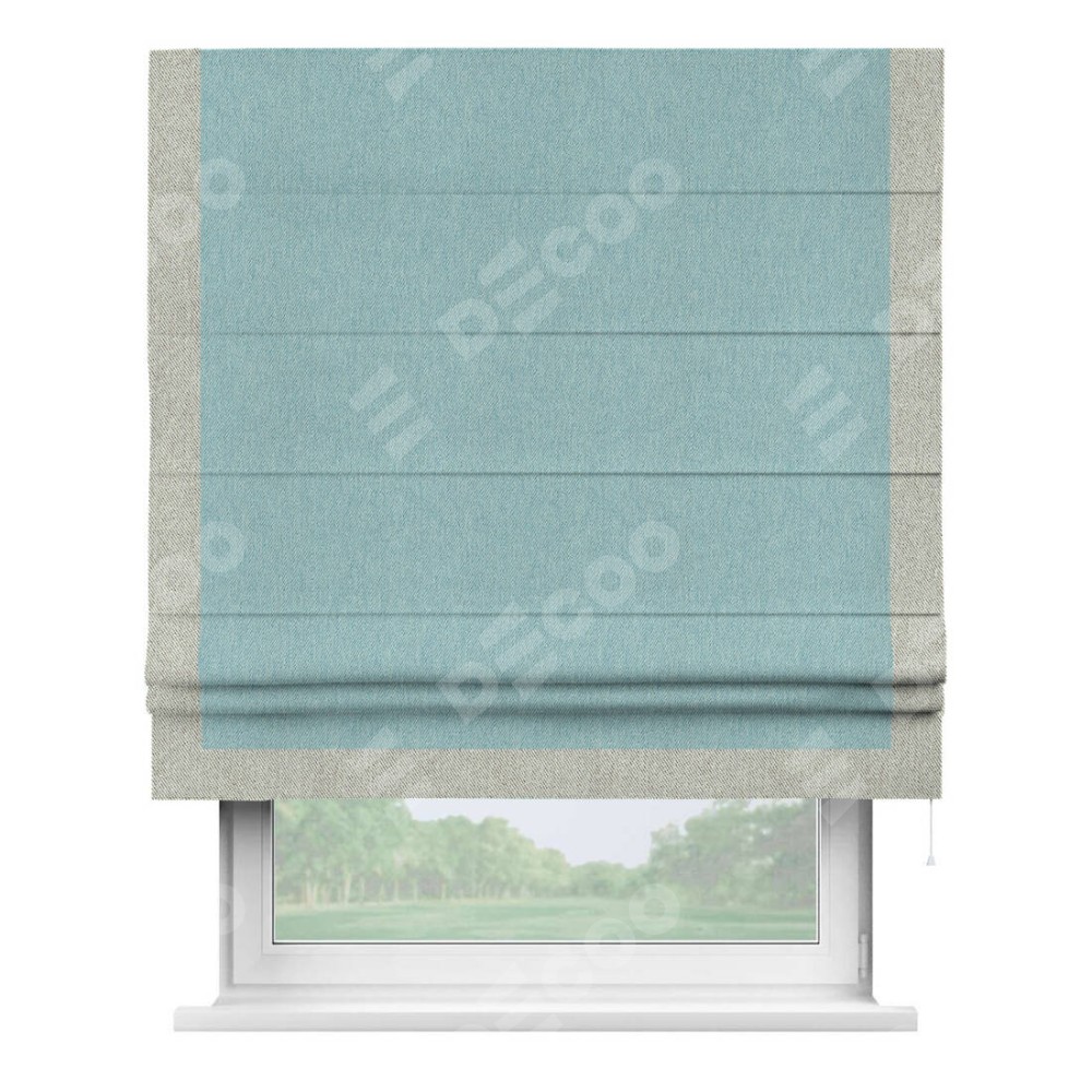 Римская штора «Кортин» с кантом Виктория, для проема, ткань твид блэкаут, небесно-голубой