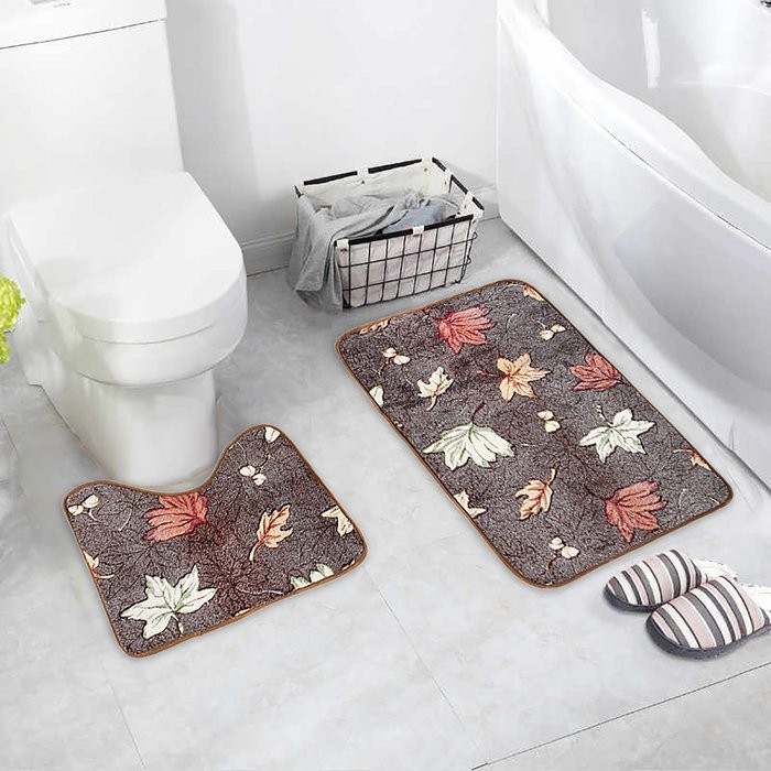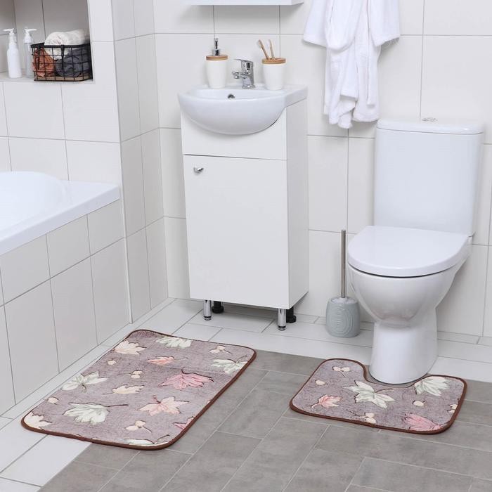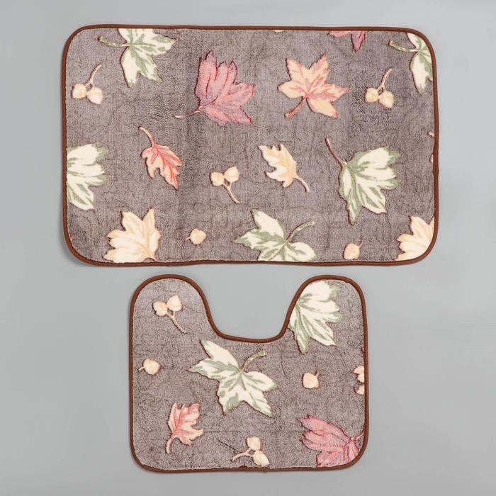 Набор ковриков для ванны и туалета Доляна «Осенние листья», 2 шт: 40×50, 50×80 см