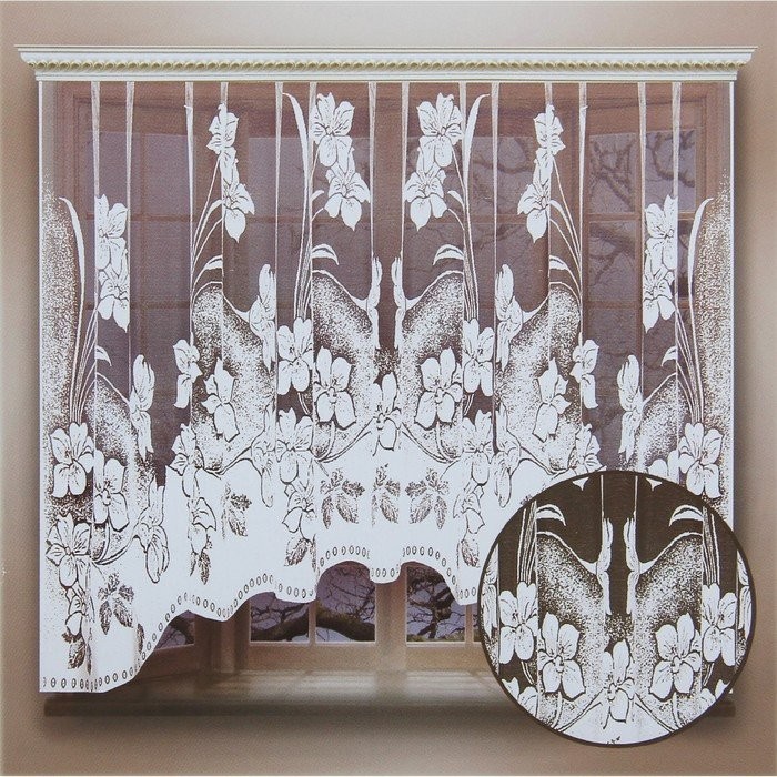 Тип тюли: Готовый, Короткий, С рисунком, С цветами, Тюль-арка