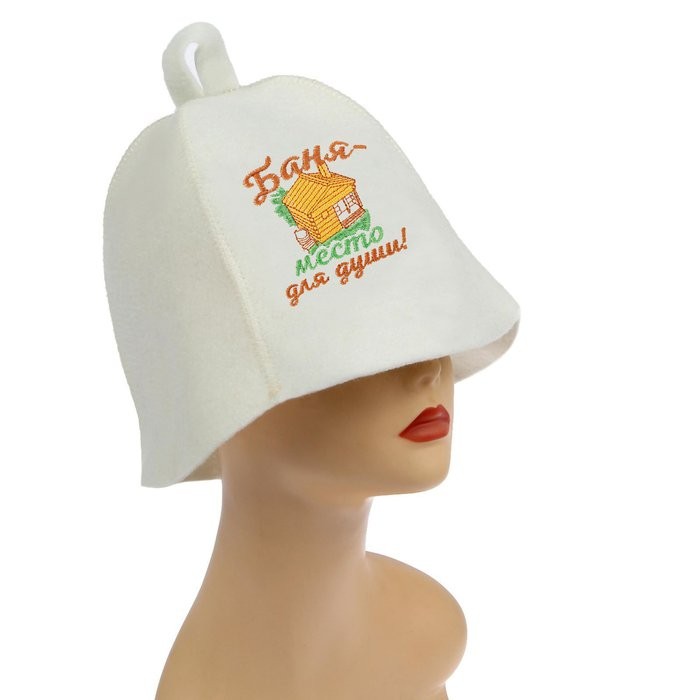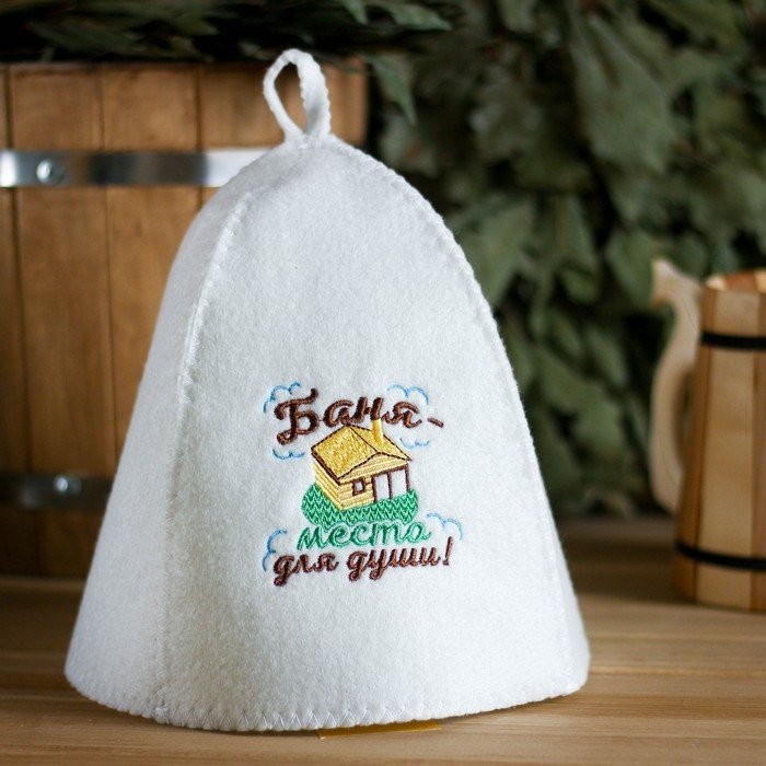Шапка для бани с вышивкой «Баня — место для души»