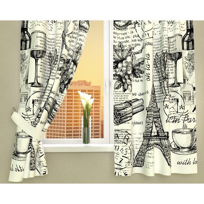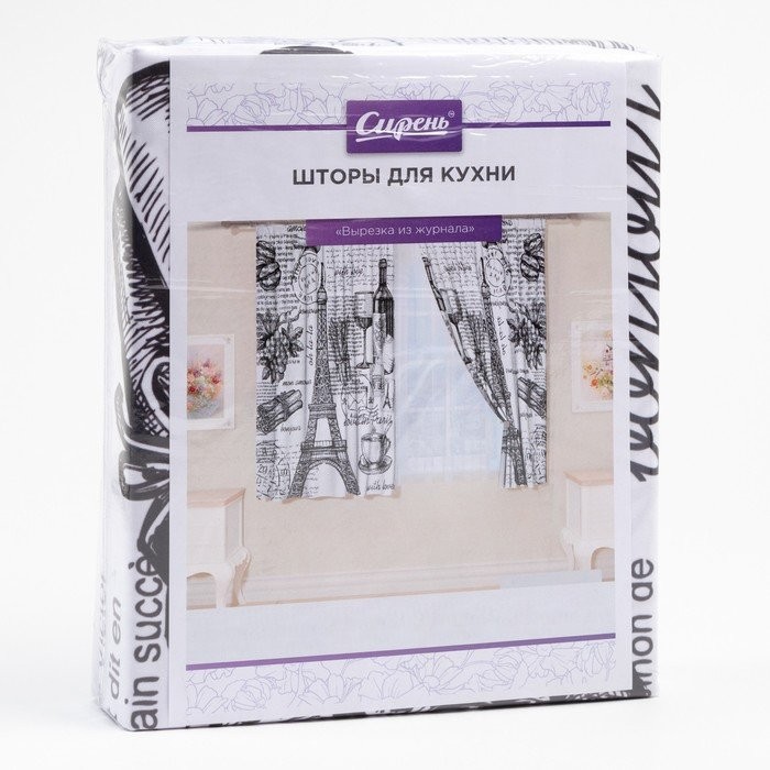 Фотошторы кухонные «Вырезка из журнала», 145×180 см, 2 шт., габардин, п/э