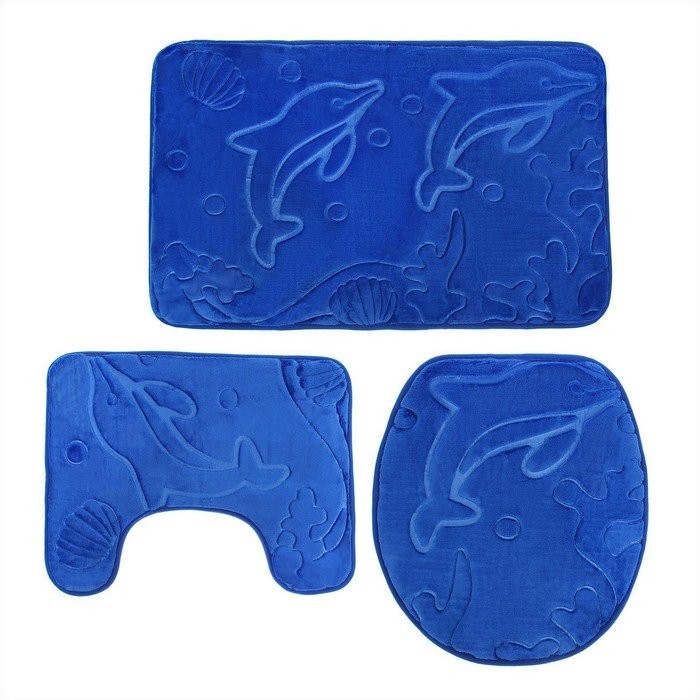 Набор ковриков для ванны и туалета Доляна «Дельфины», 3 шт: 39×43, 40×50, 50×80 см, цвет МИКС