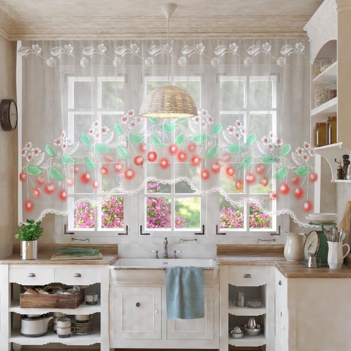 Тип тюли: Готовый, Короткий, С рисунком, С цветами, Тюль-арка
