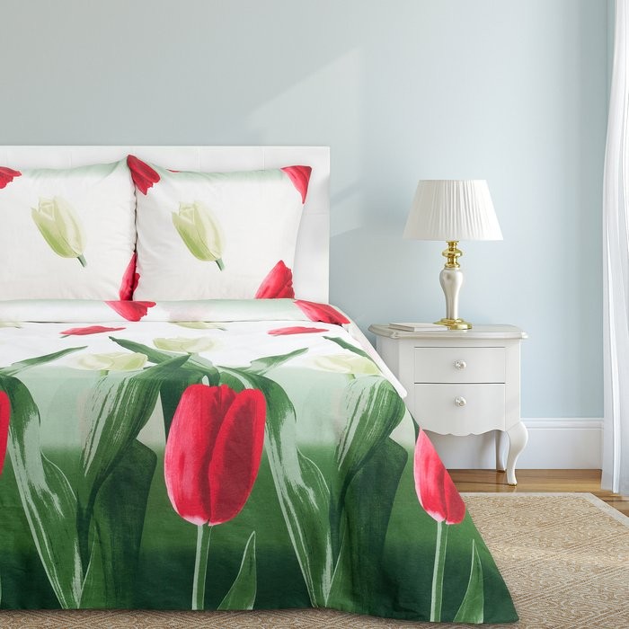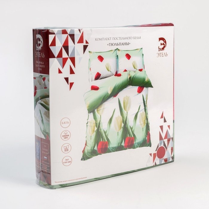 Постельное бельё «Этель» 1,5 сп. Тюльпаны 143×215 см, 150×214 см, 70×70 см — 2 шт, 100% хлопок, бязь 125 г/м²