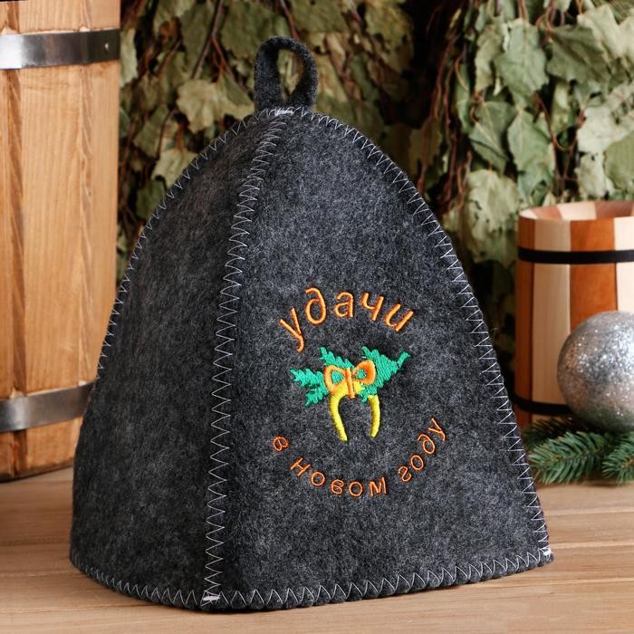 Шапка для бани «Удачи в Новом году» серая микс