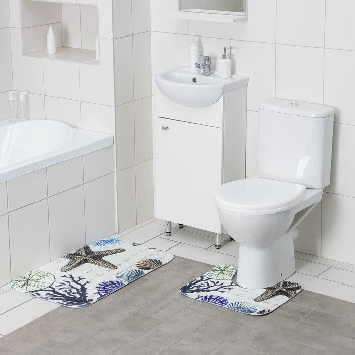Набор ковриков для ванны и туалета Доляна «На дне», 2 шт: 40×45, 45×75 см