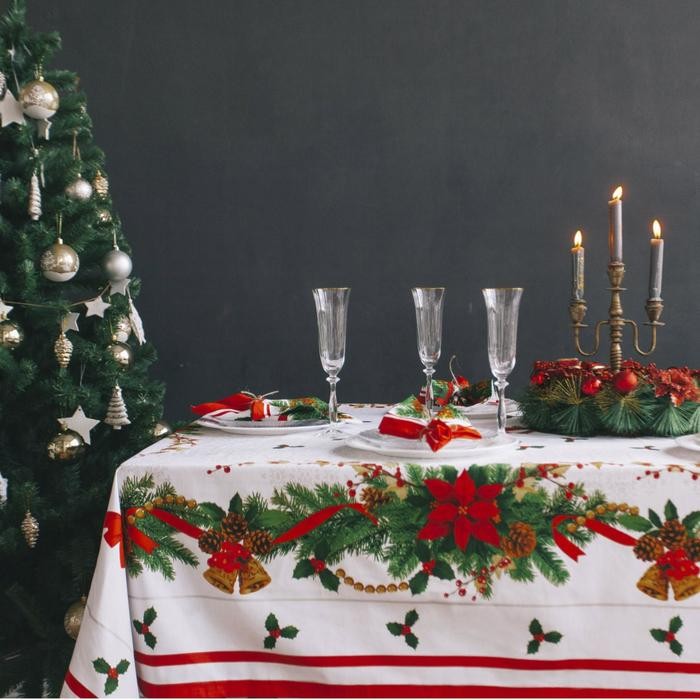 Скатерть украсит праздничный интерьер. Изделия с эксклюзивным принтом сшиты из хлопкового полотна. Этот материал имеет плотную и упругую структуру, обладает высокой прочностью и на ура справляется с первостепенными задачами: