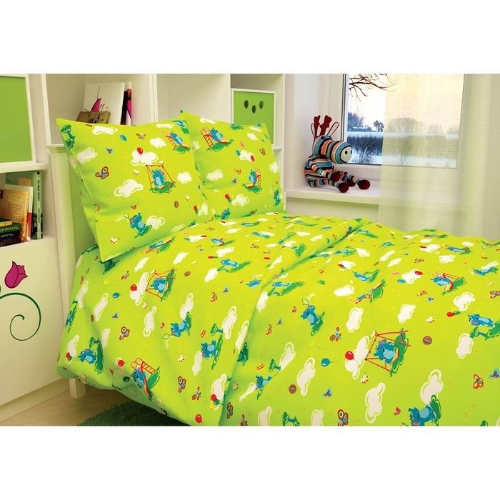 Детское постельное бельё BABY «Слоники», цвет зеленый 112×147 см, 110×150 см, 60×60 см, бязь 142 гр/м