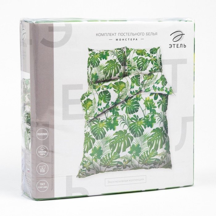 Постельное бельё «Этель» 1,5 сп., Монстера, размер 143×215 см, 150×214 см, 70×70 см — 2 шт