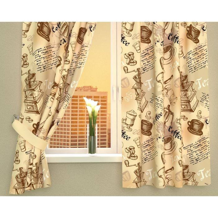 Фотошторы кухонные «Кофейный набор», размер 145×160 см — 2 шт., габардин