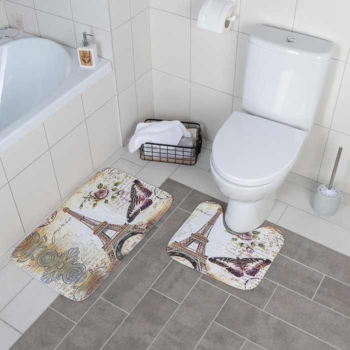 Набор ковриков для ванны и туалета Доляна «Французский стиль», 2 шт: 39×45, 45×73 см