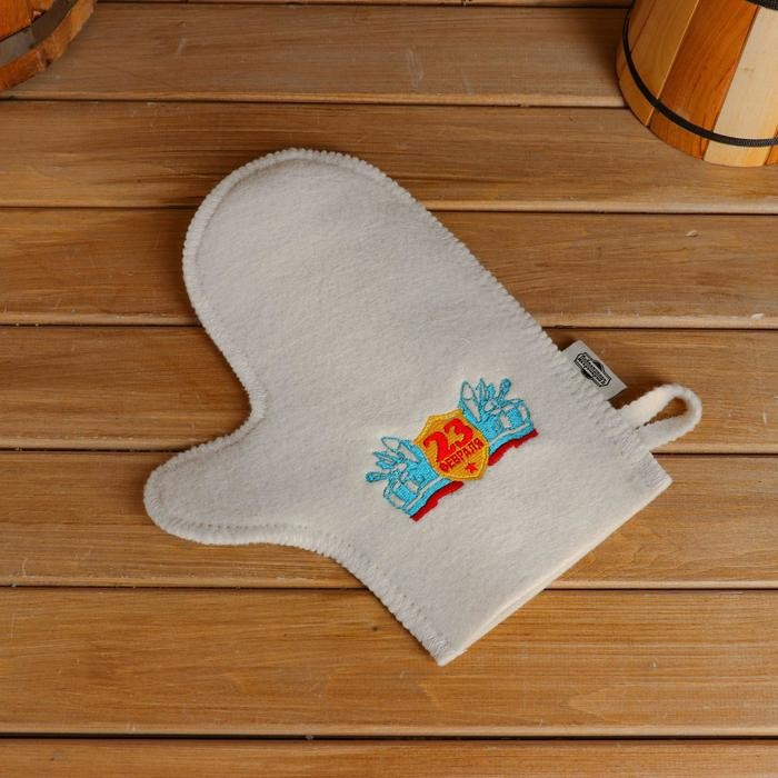 Рукавица для бани с вышивкой «23 февраля», первый сорт