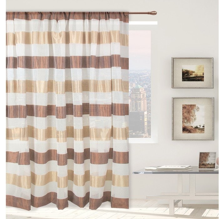Тюль «Этель» 145×280 Песчаное побережье (горизонтальная полоса) б/утяжелителя, 100% п/э