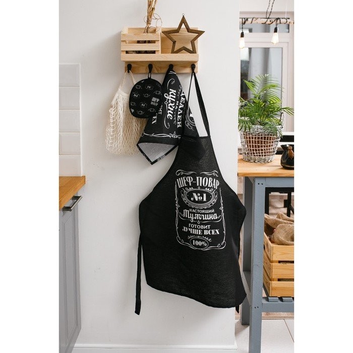 Кухонный набор 3 пр. «Шеф-повар №1» фартук 60×70 см, прихватка 20×20 см, полотенце 35×60 см