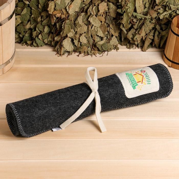 Банный коврик-лежак из войлока с оригинальной вышивкой отлично впитывает влагу и защищает тело от жара полок. Аксессуар выполняет также и гигиеническую функцию, что немаловажно при походах в общественные заведения. Лежак пригодится поклонникам классической русской бани и тем, кто предпочитает сухой жар финской сауны.