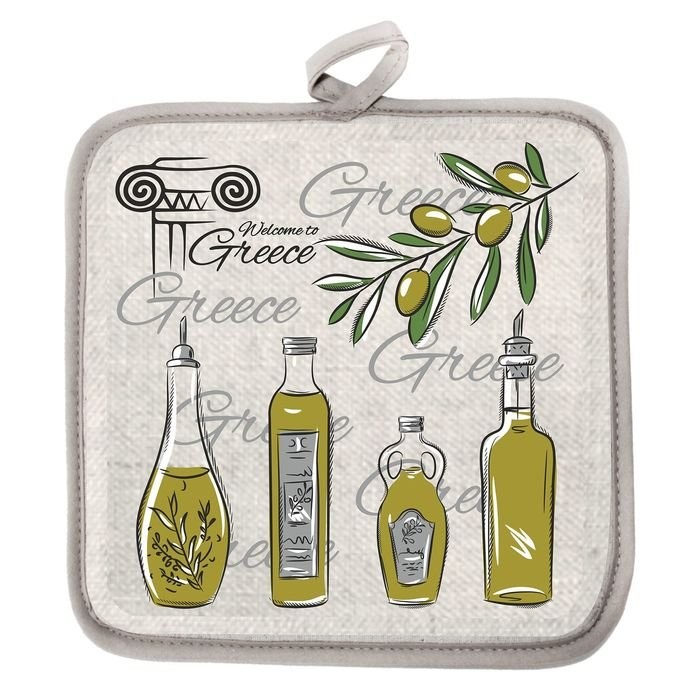 Прихватка Олив. масло 18×18 полулён шелкография, 160г/м