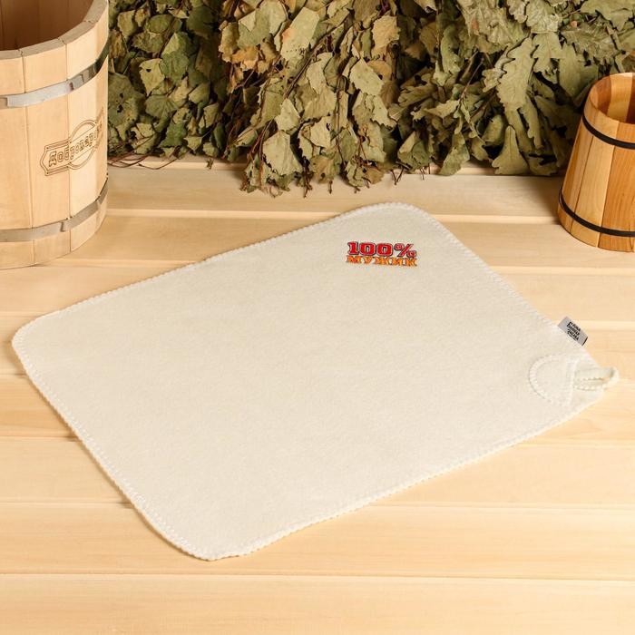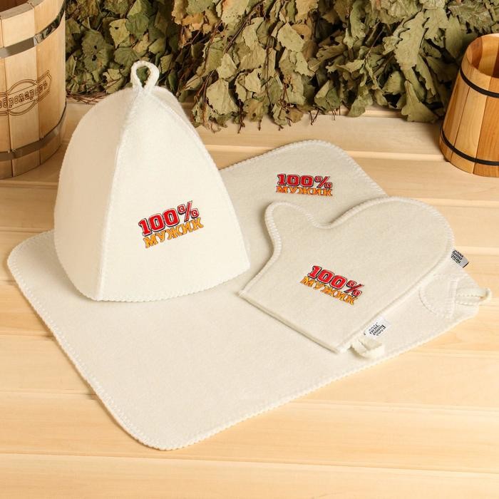 Набор для бани «100% Мужик» вышивка шапка, коврик и рукавица