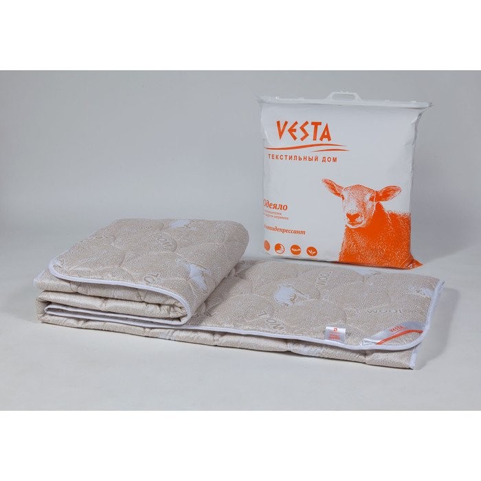 Одеяло облегченное 140×205 см, шерсть мериноса, ткань глосс-сатин, п/э 100%