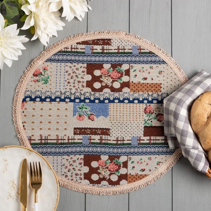 Салфетка на стол Этель «Пэчворк» с бахромой d40 ± 2 см