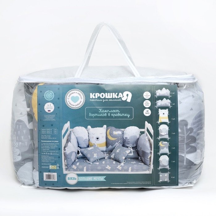 Бортики в кроватку Крошка Я «Dream Big» (60х42см-2шт, 30х42см-4шт, 30х30см-4шт), 100% хлопок