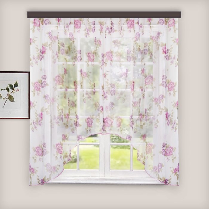 Тип тюли: Готовый, Короткий, С цветами, Тюль-арка